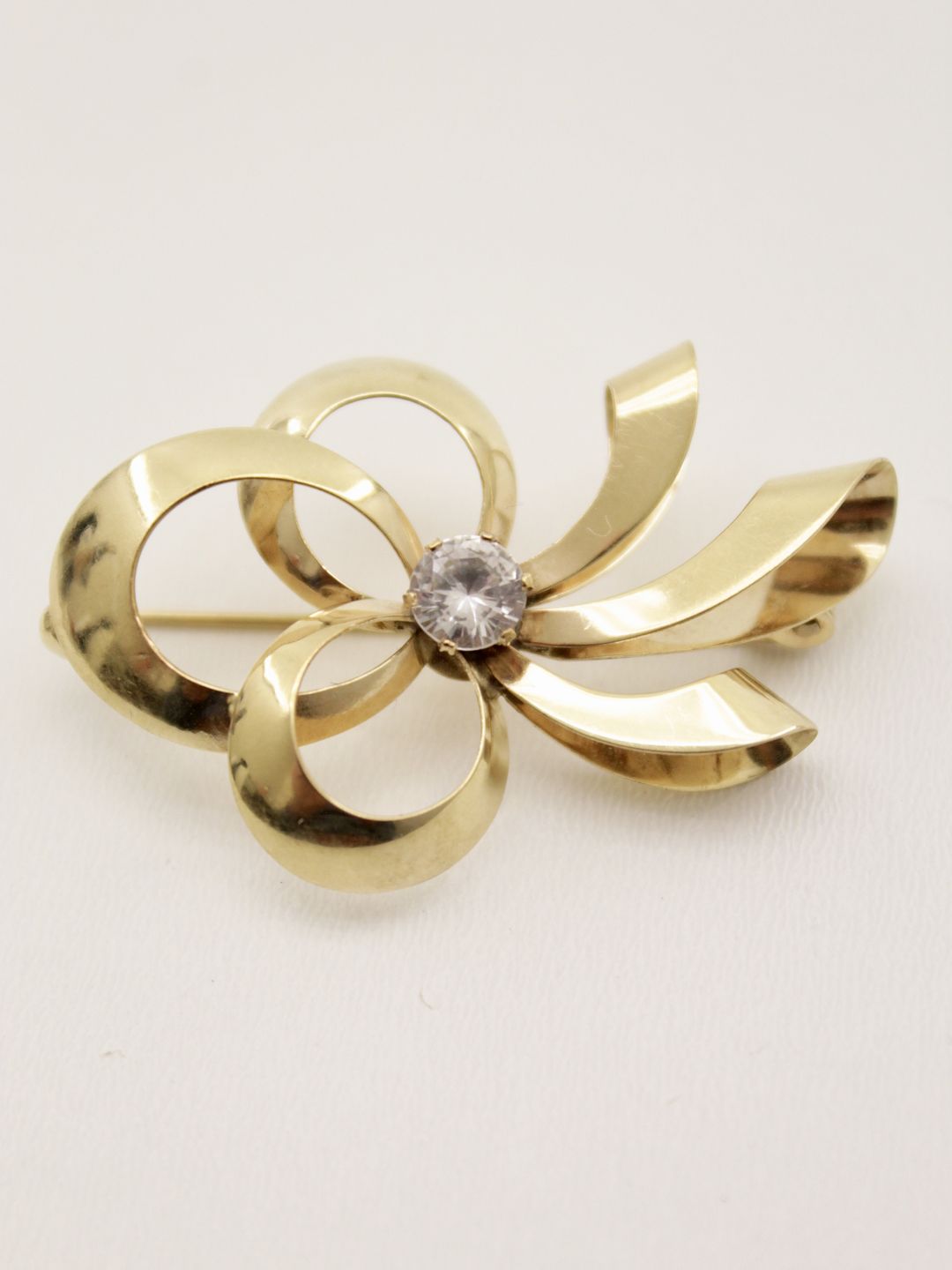 Herman Siersbøl 14 karat guld broche 4 x 2,3 cm. med klar sten Nr. 331413