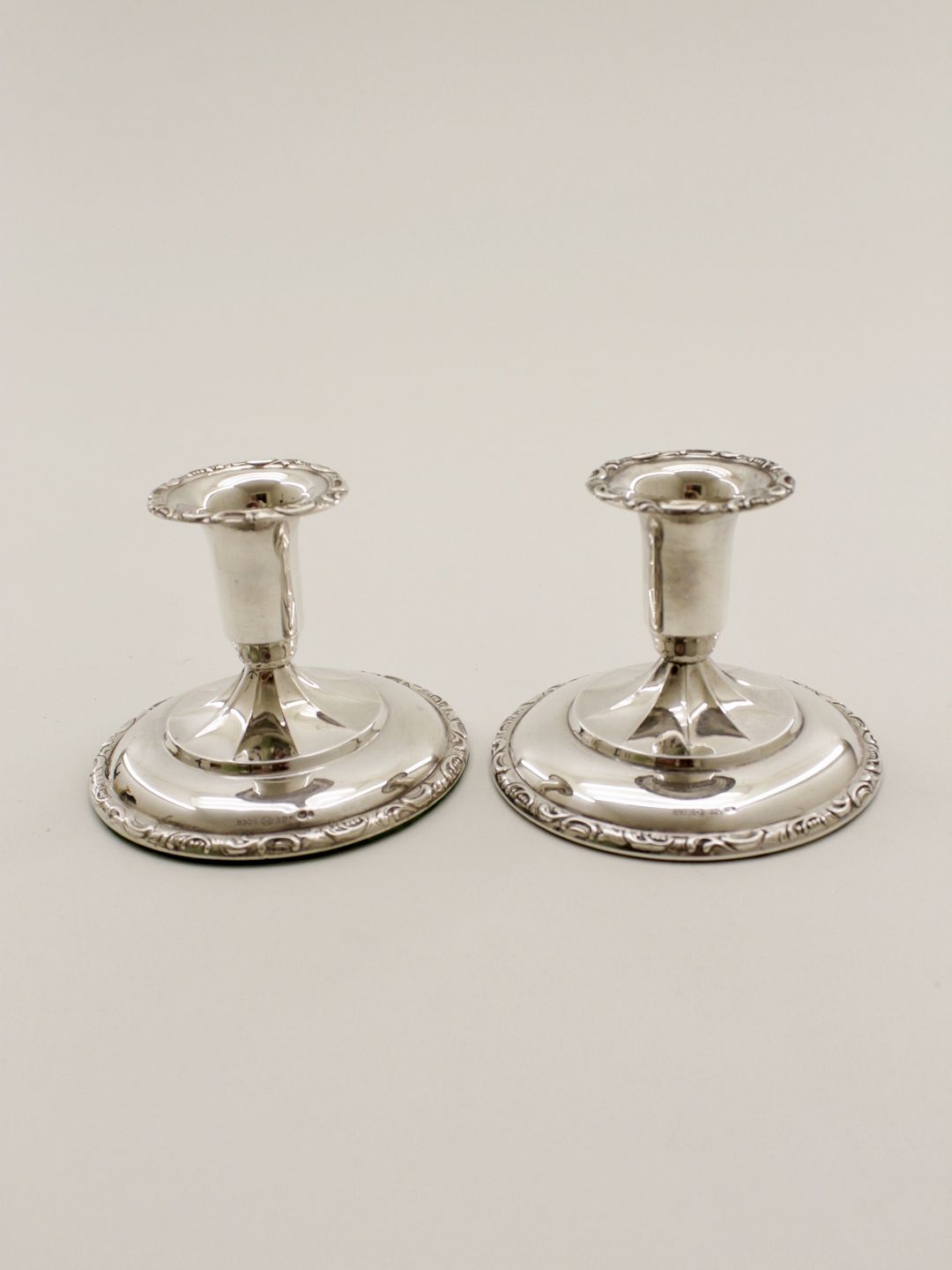 Et par 830 sølv lysestager H. 8 cm. Nr. 345242