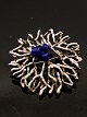 Moderne sterling sølv broche D. 3,5 cm. med blå stene fra sølvsmed Herman Sierbøl emne nr. 490481