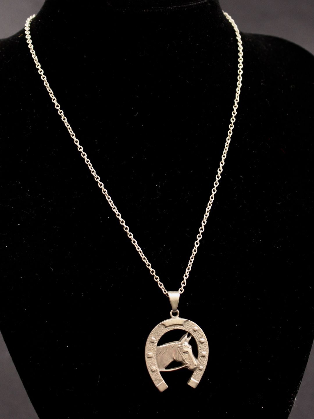 Vedhæng 2,5 x 3,2 cm. sterling sølv med heste motiv fra juveler B Hertz København kæde 39 cm. emne nr. 512306