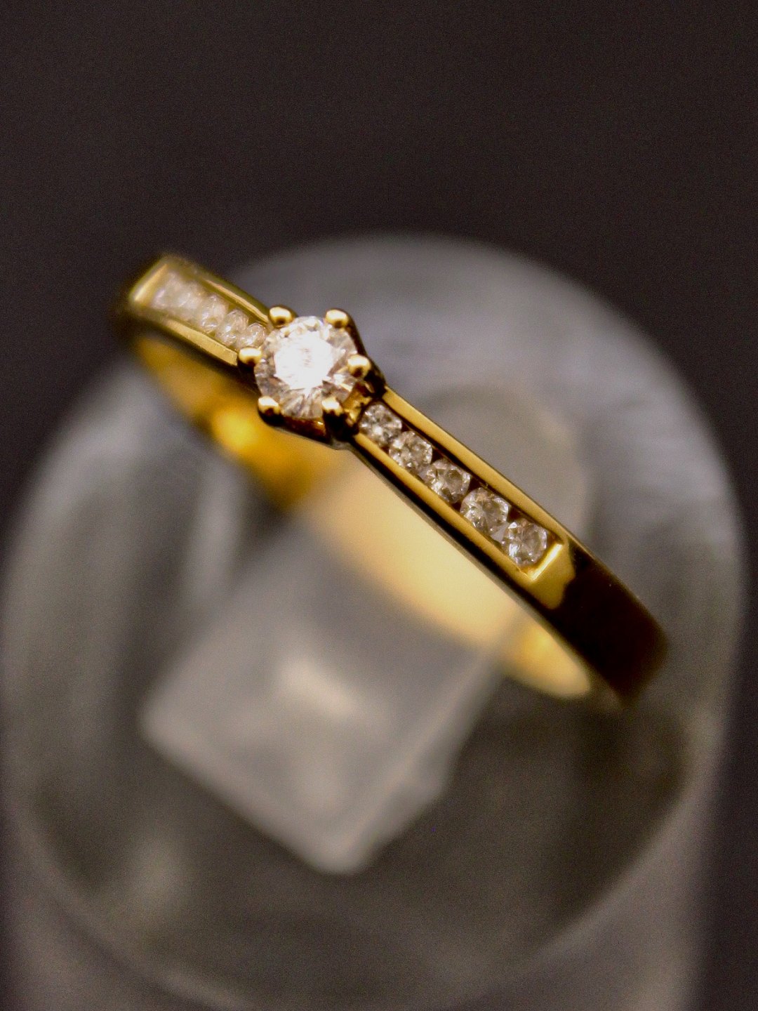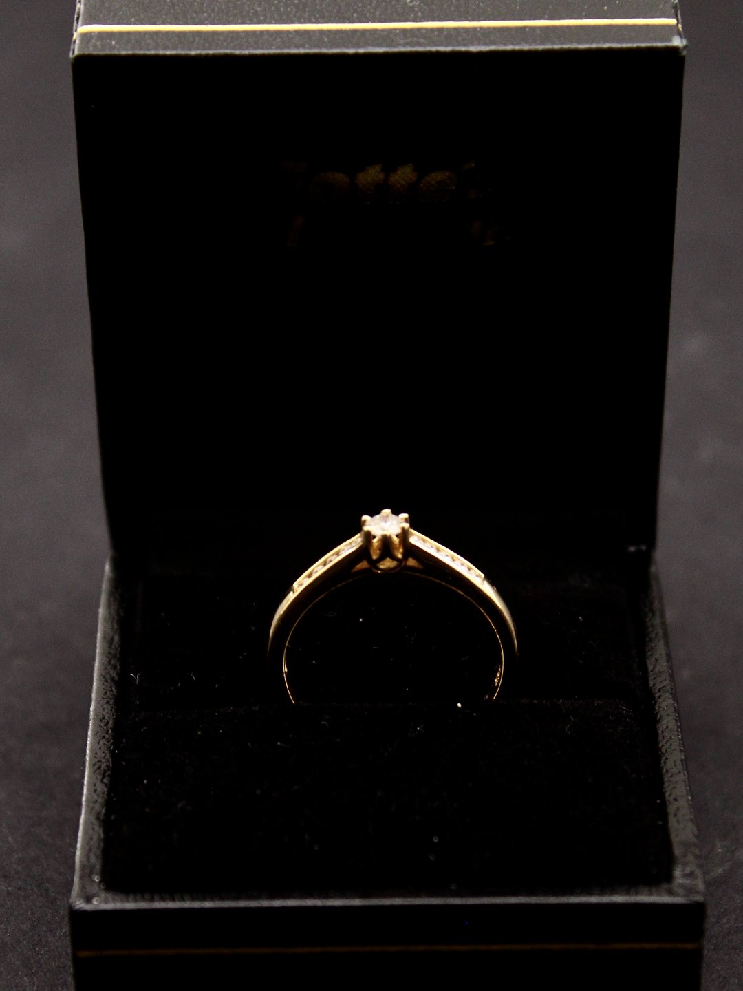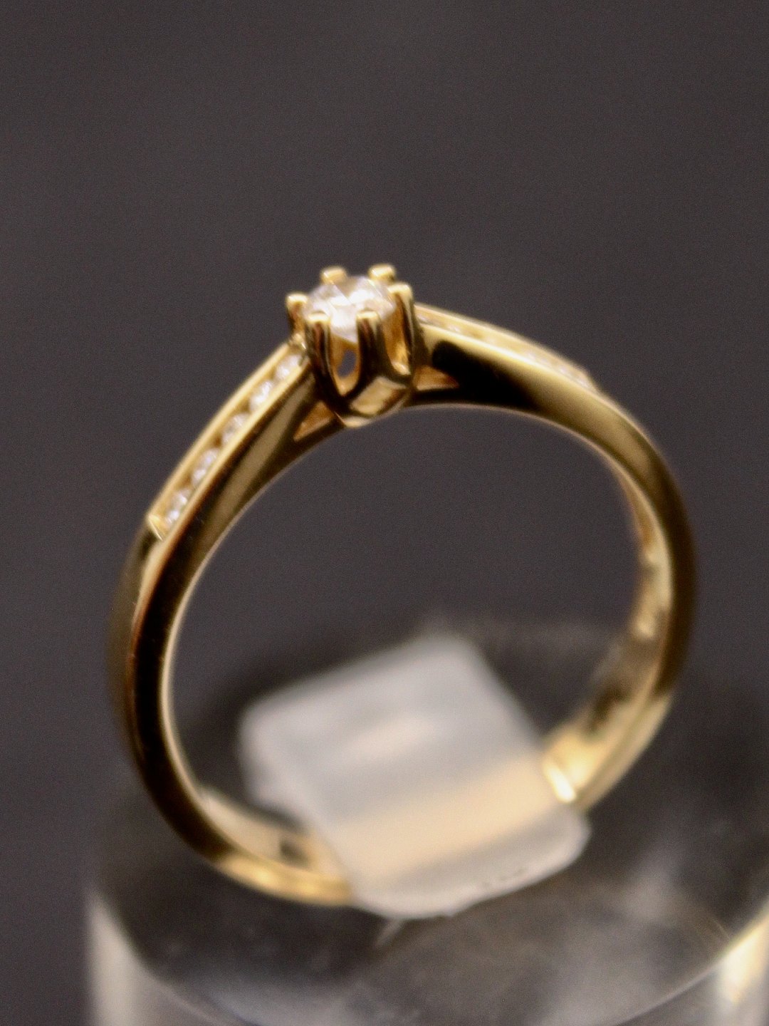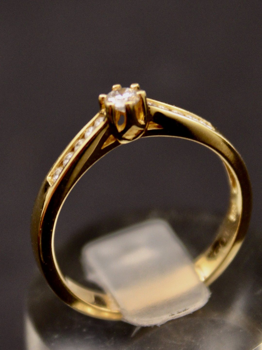 14 karat guld ring størrelse 55 med en diamant på 0,10 carat og 10 små diamanter emne nr. 515521