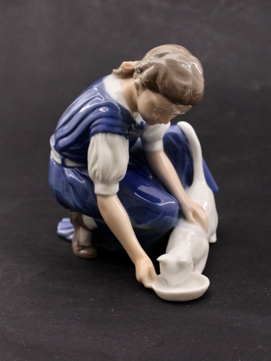Bing & Grøndahl Girl with cat 1745 Ingeborg Plockross Irminger 15 cm. 1st sorting subject no. 538370