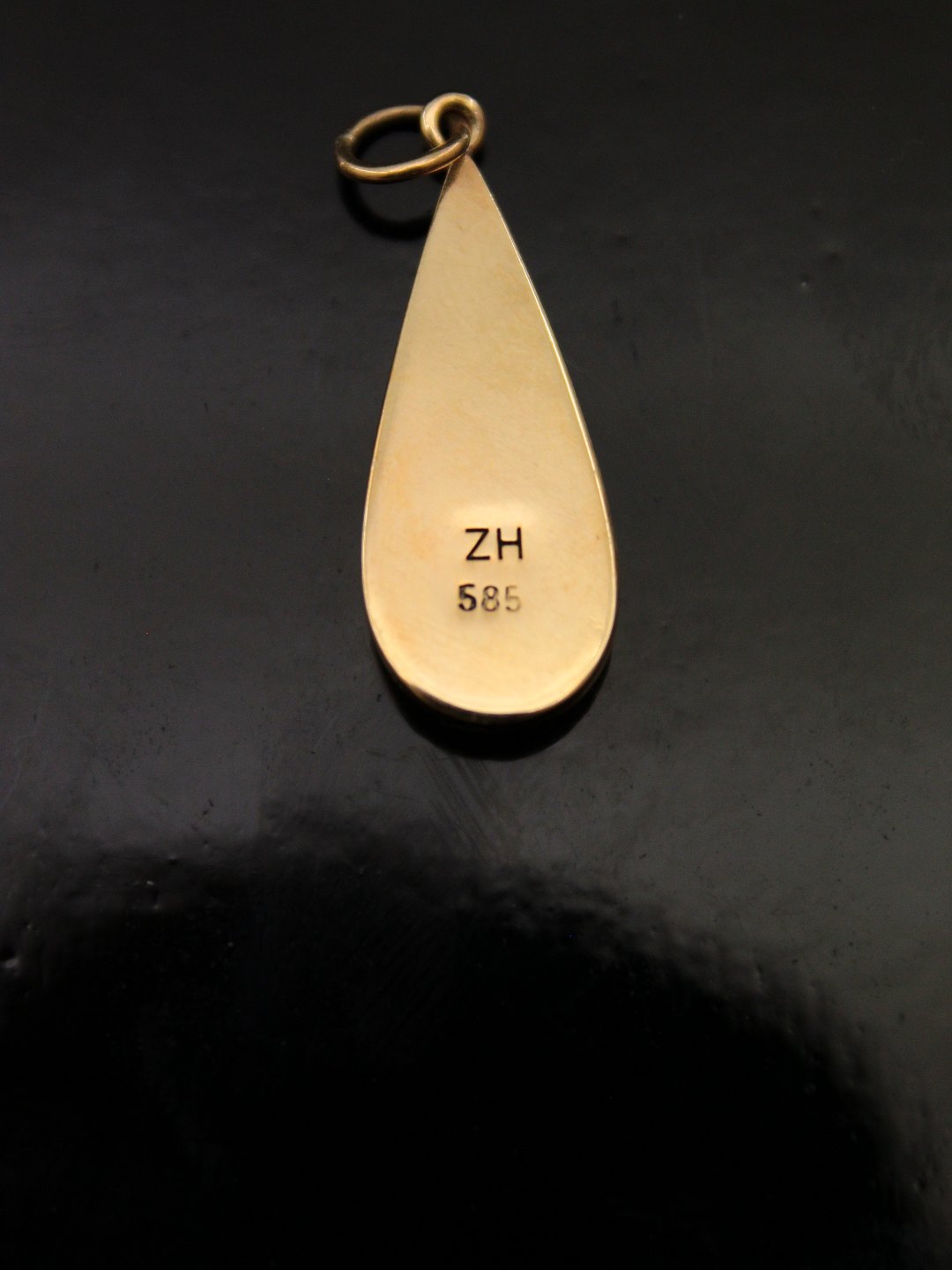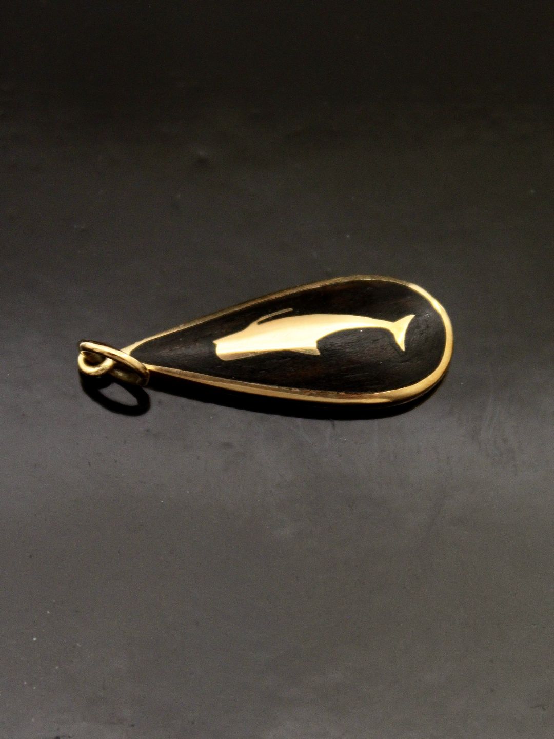 14 karat guld vedhæng 2,9 x 1,1 cm. med hval stemplet ZH 585 emne nr. 543208