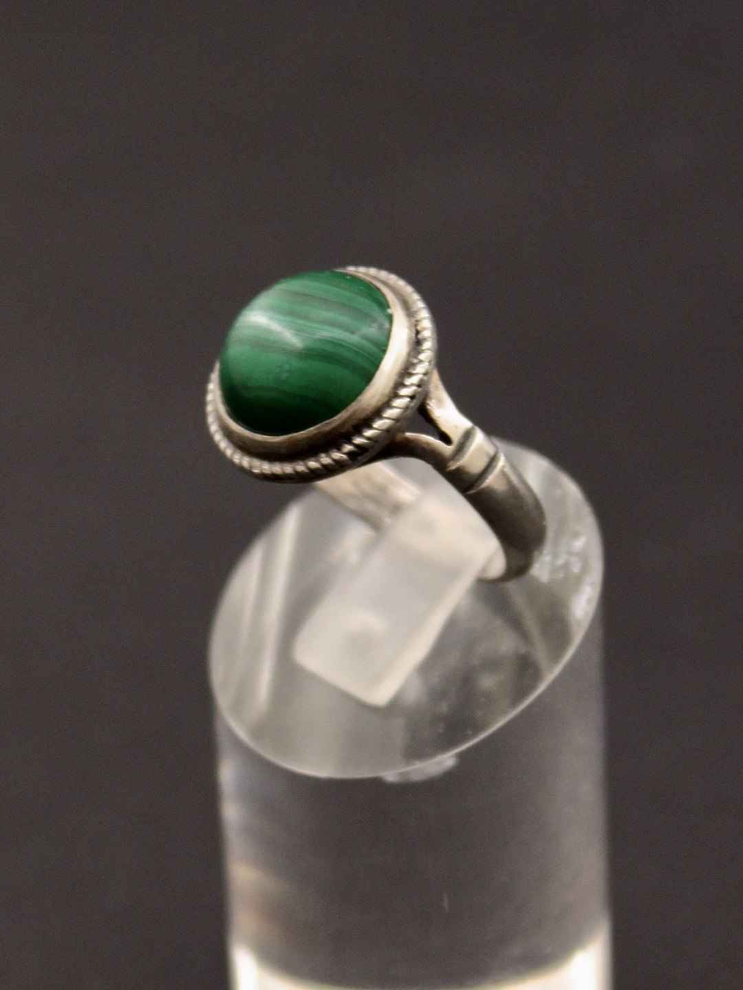 Sterling sølv ring størrelse 57 med malakit emne nr. 597201
