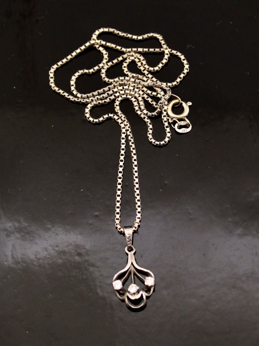 18 karat hvidguld vedhæng med diamant 1 x 1,5 cm. stemplet 18K ALTON og 14 karat kæde 40 cm. emne nr. 606975
