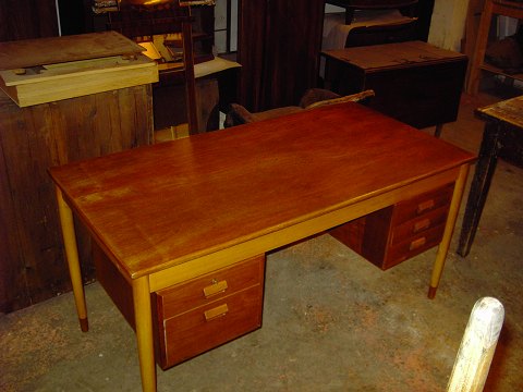 Vi udfører også vedlighold / forbedringer på designermøbler. Dette arkitekttegnede skrivebord har fået helt ny overflade med lak, og er yderligere snedkermæssigt restatureret.
