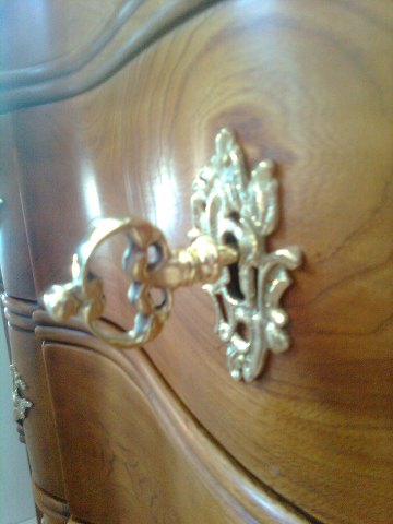Bureau from elm. Completely restored inclusive cabinetmakers work and new surface. Brackets and keys restored.