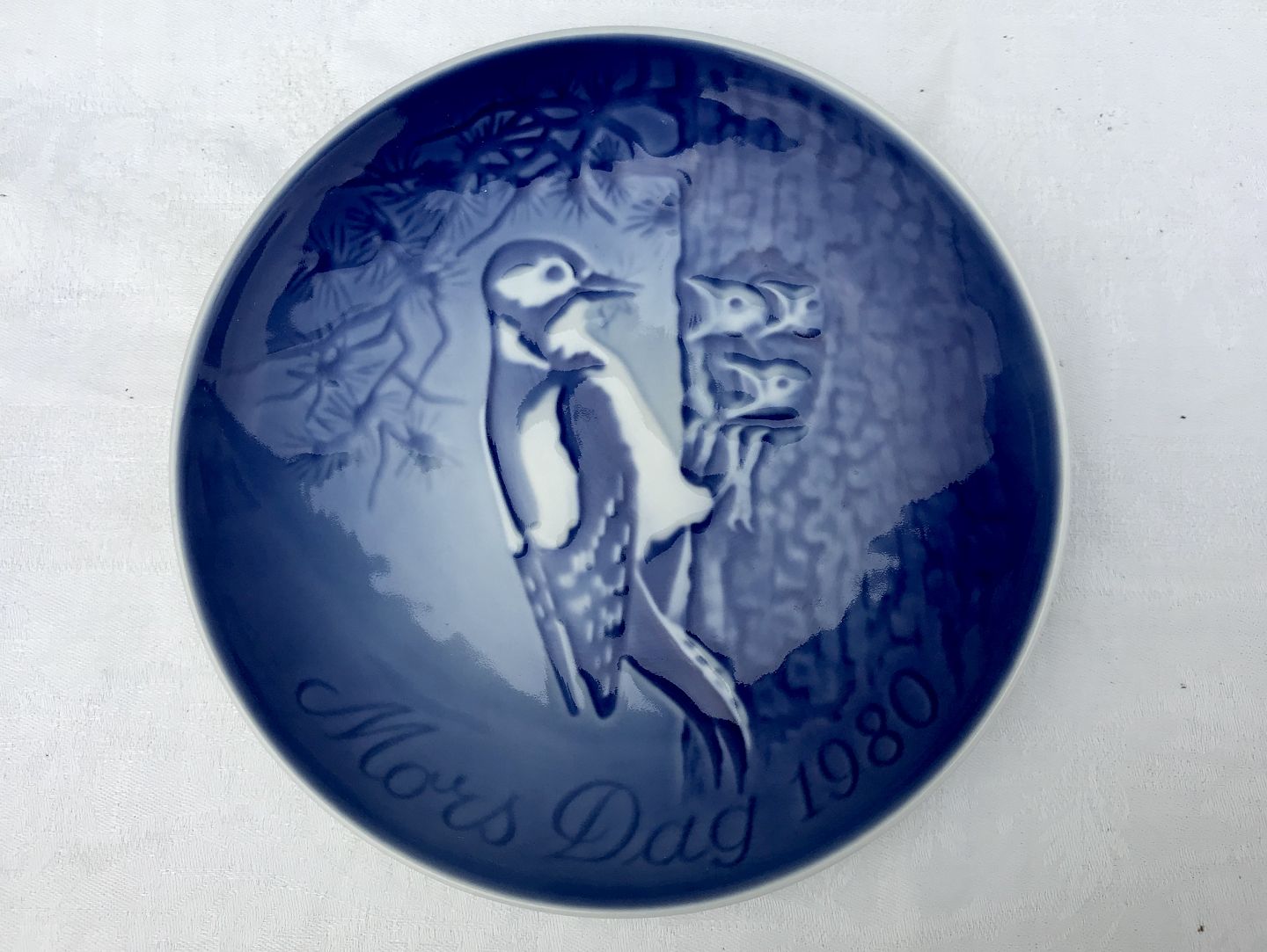 Woodpecker with Chicks. Bing & Grondahl Mother's Day Plate, 1980, 18cm in diameter, Design Henry Thelander * Good condition *