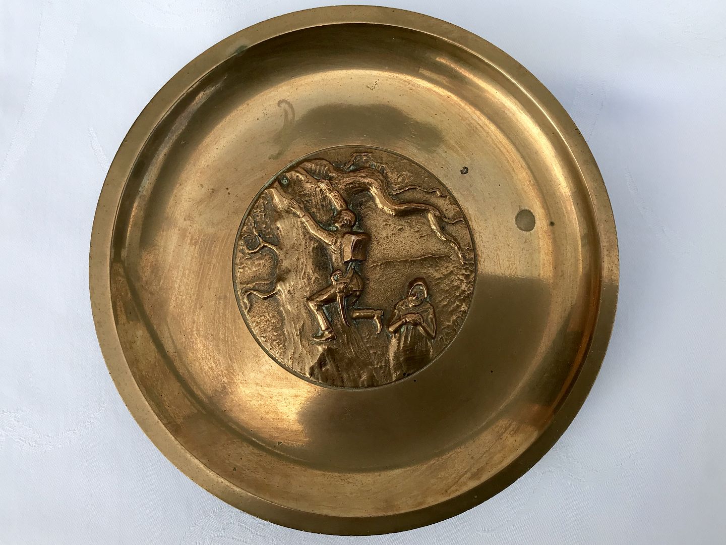 Tinos, Ægte Bronze, Platte med motiv af H.C.Andersens “Fyrtøjet” 21,5cm i diameter *Med patina*