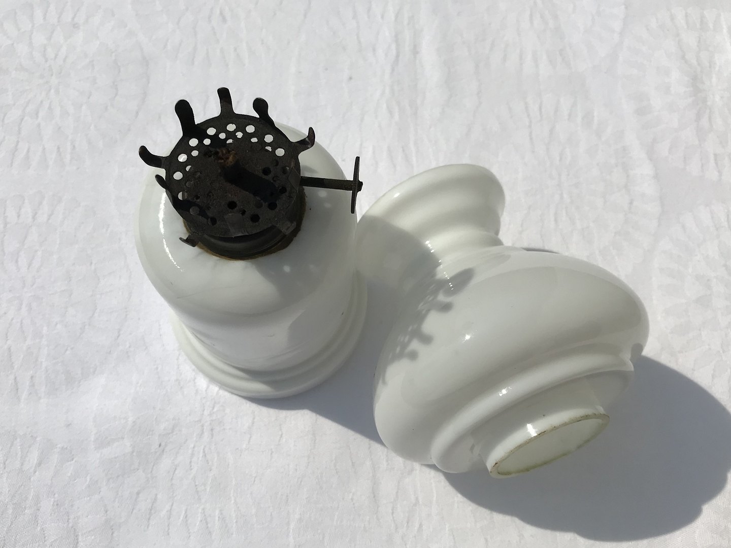 Fyens Glasværk, Oil lamp without burning glass. Opal glass with shelled decoration of flowers, 22cm high * used condition *
