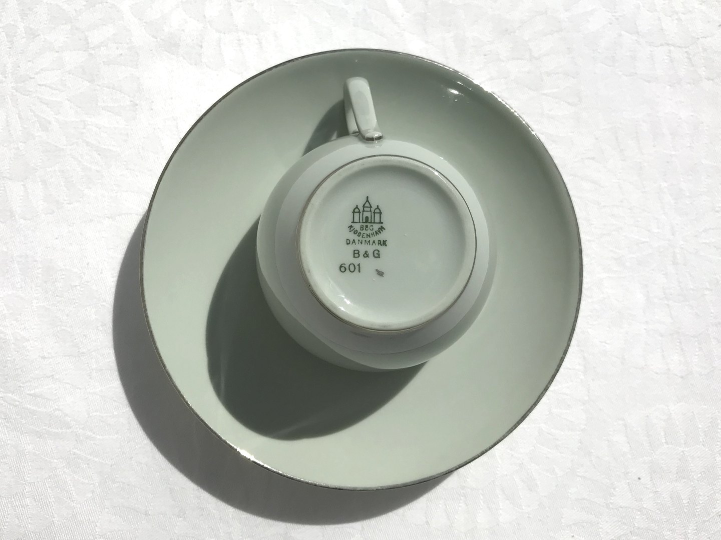 Bing & Grondahl, Apollon with platinum edge, Coffee set # 601, 5.5cm high, 7cm in diameter * Nice condition *