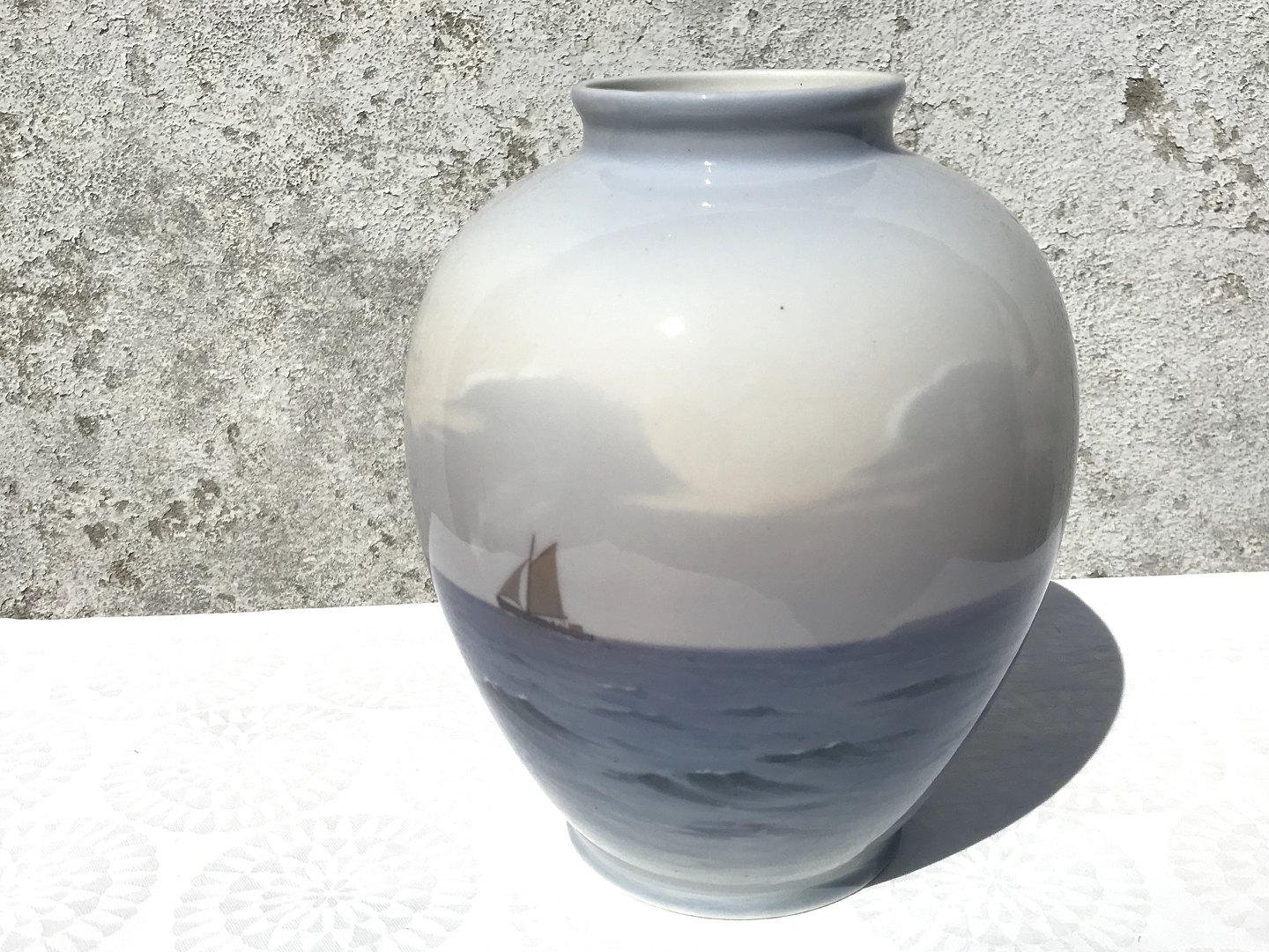 Bing & Grondahl, Vase with sailing ship # 8702/354, 23cn high, approx. 21cm wide, 1st grade * Perfect condition *