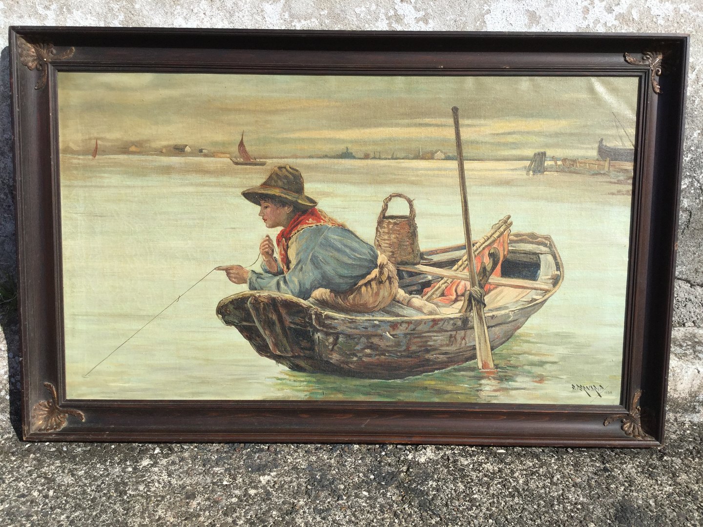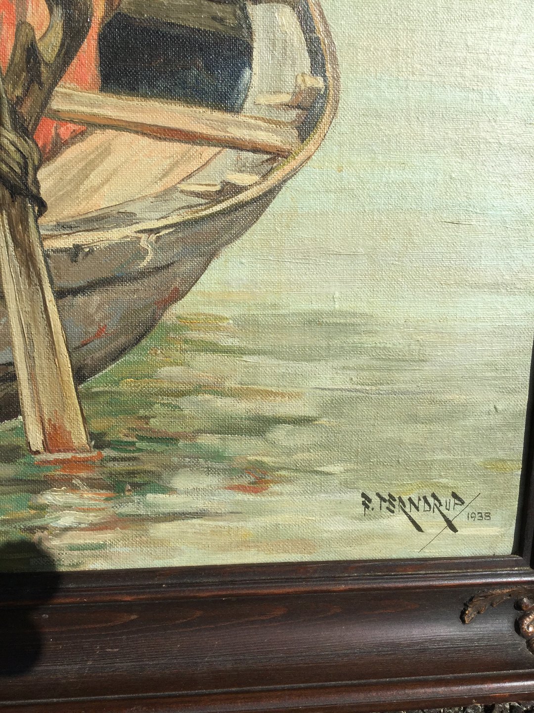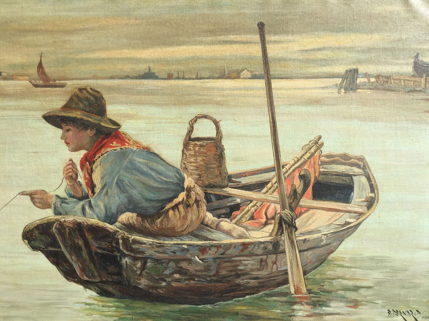 Fiskerdreng, signeret F. Terndrup 1938. Mål: 54x94cm, med ramme 67x107 cm