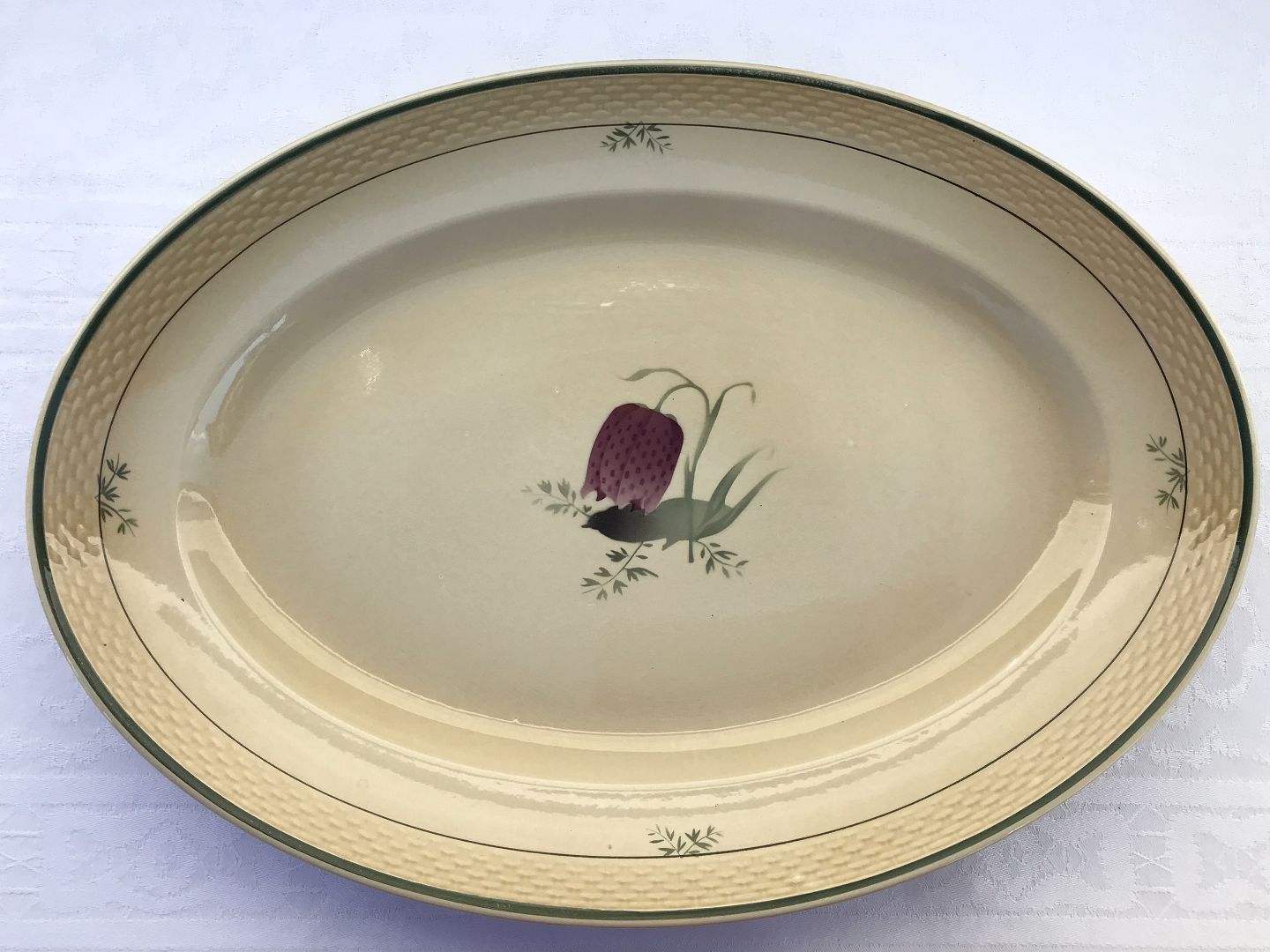 Royal Copenhagen, Aluminia, Victoria II frame shape, Vibe egg, Fritillaria meleagris, Serving dish, 44cm wide, 31cm deep, Design Nils Thorsson *Good used condition*