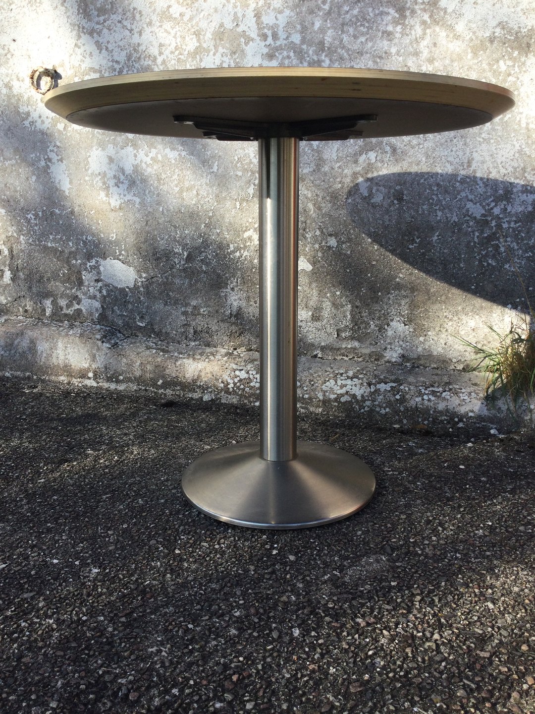 Round laminate table with metal base from Brdr. Andersen. Diameter 80 cm, height 74 cm. Really nice condition