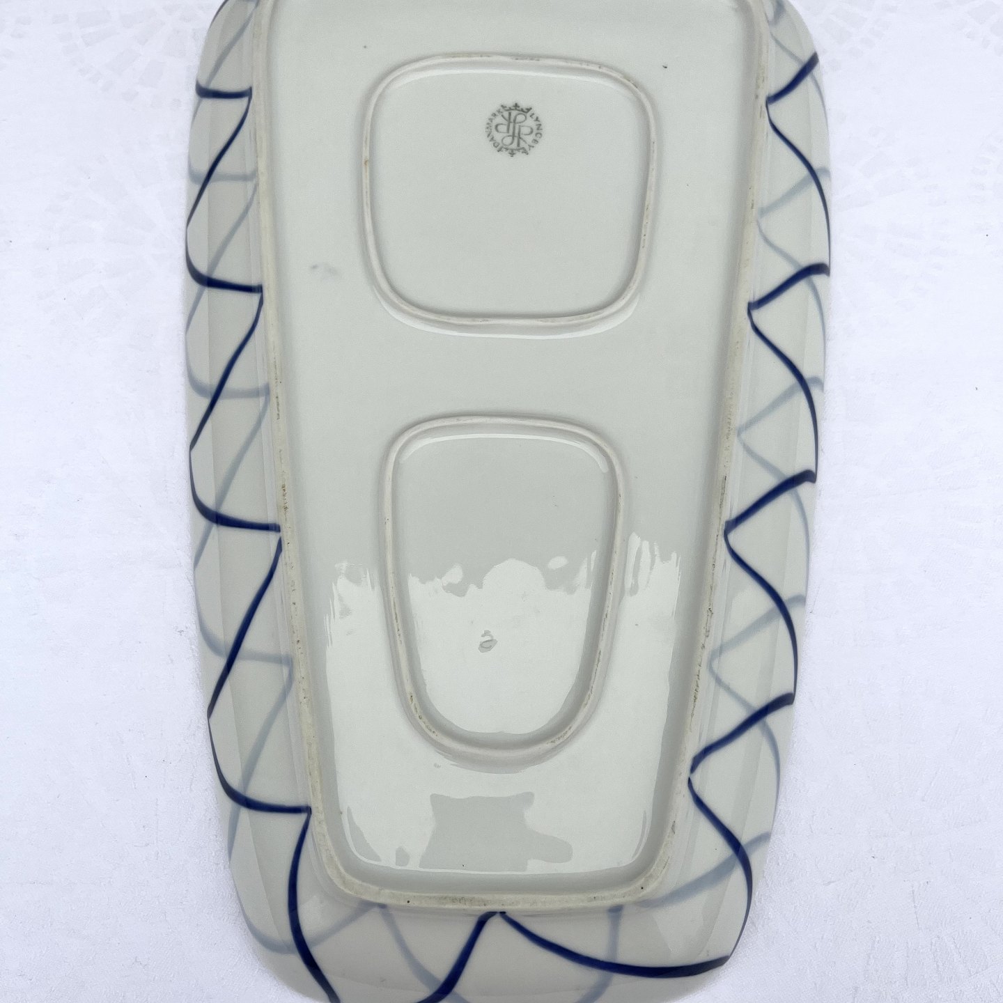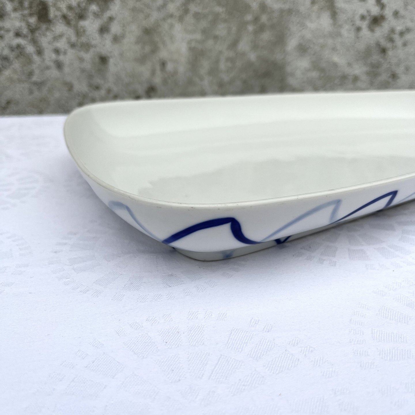 Harlequin, Danild 40, Harlequin, Blue flame, Asymmetrical dish, 33.5 cm long, 14.5cm/21cm wide, 2nd grade, Design Axel Brüel & Egon Mortensen *Good condition*