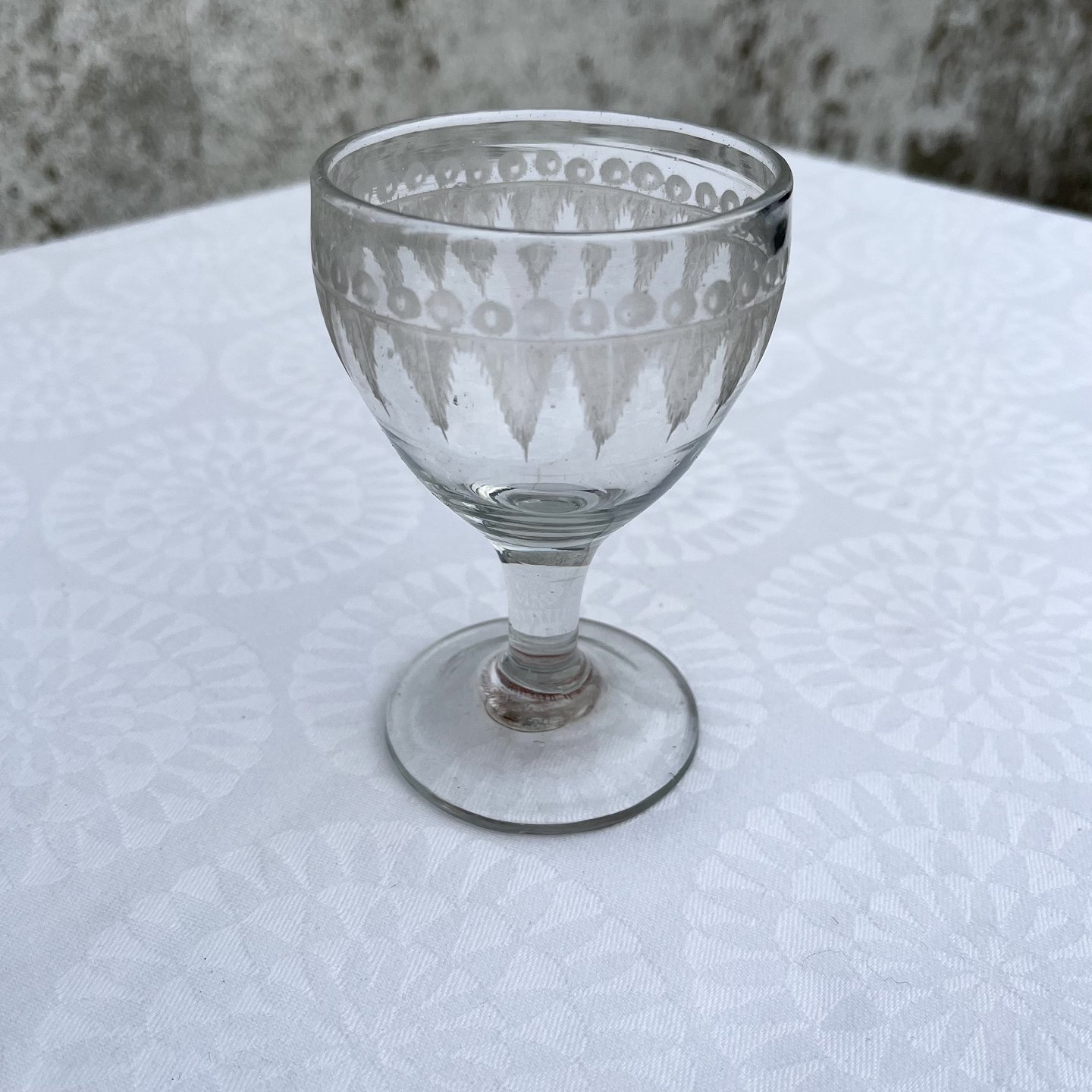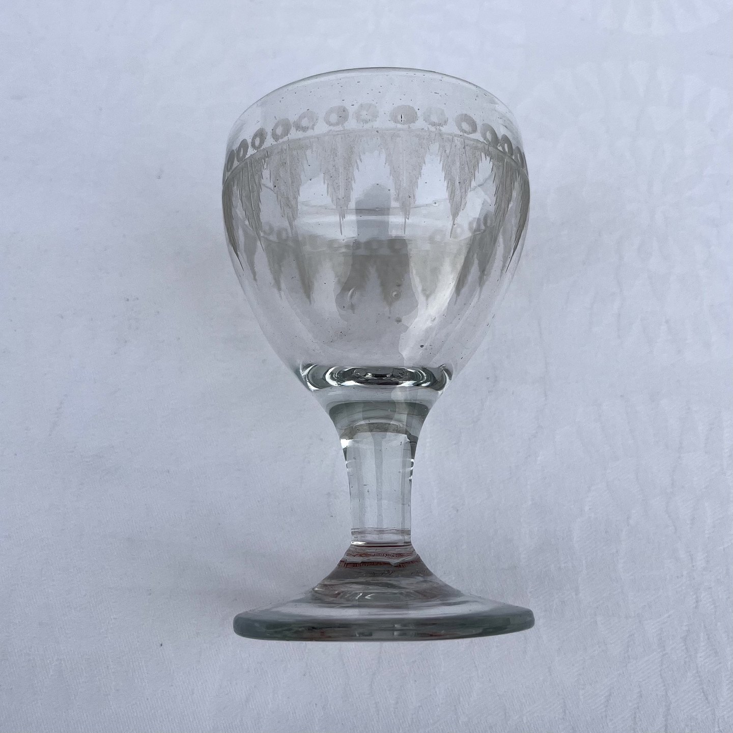Older wine glasses with a matt sanding many ceiling bubbles / irregularities in the glass mass, 10.5 cm high, 7 cm in diameter, Presumably Swedish or Norwegian * Nice condition *