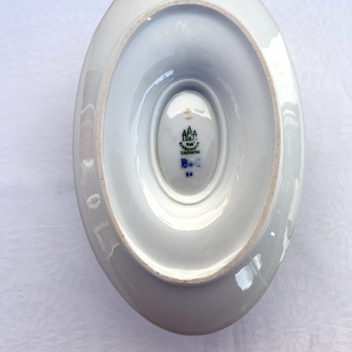 Bing & Grondahl, Kipling, Butterfly with gold edge # B & G, Sauce jug with dolphin handles, 22cm wide, 10cm high * Perfect condition *