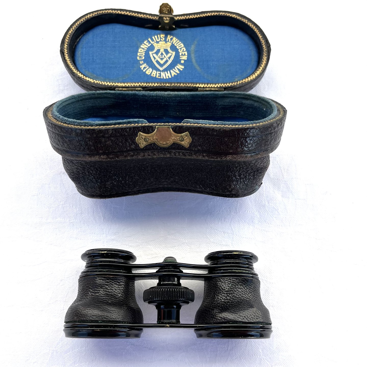 Theater binoculars with bag, Cornelius Knudsen - Copenhagen, 10cm wide, 4cm high * Nice condition *