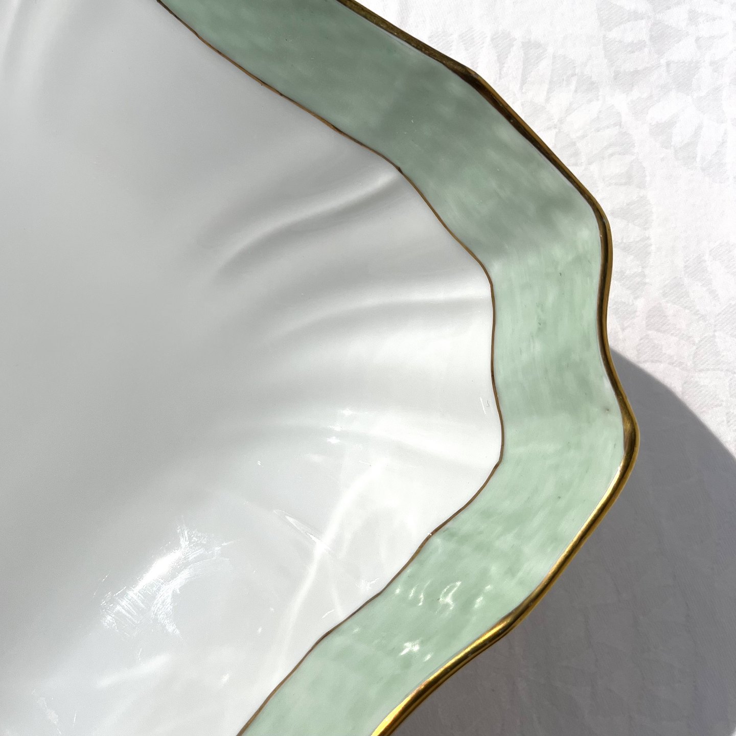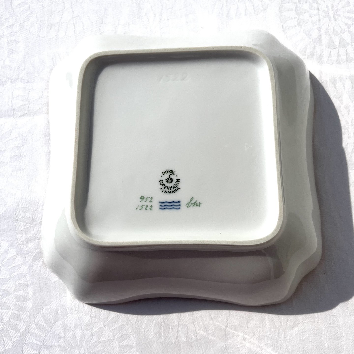 Royal Copenhagen, Green curved, Serving bowl # 952/1522, 20.5cm / 20.5cm, 1st grade * Perfect condition *