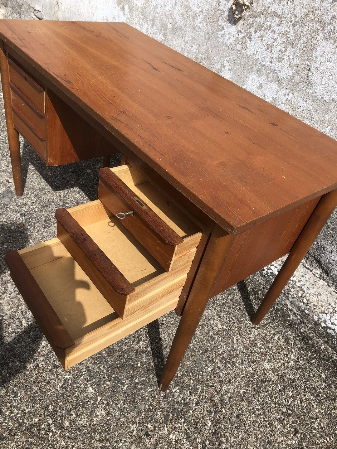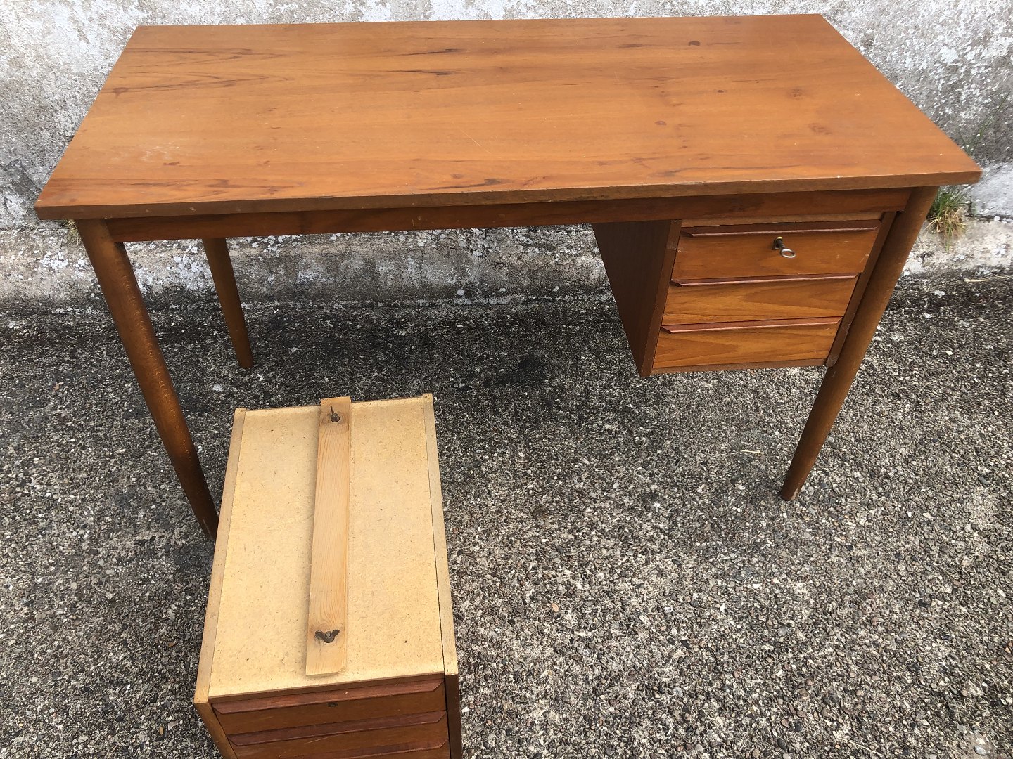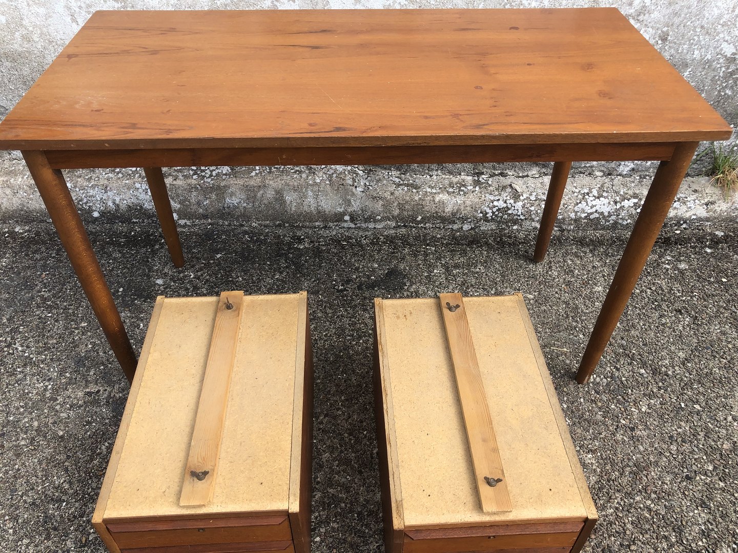 Small desk with removable drawer modules. Danish modern from the 1960s. Some scratches / veneer damage. Dimensions: HxLxW 73x120x58 cm