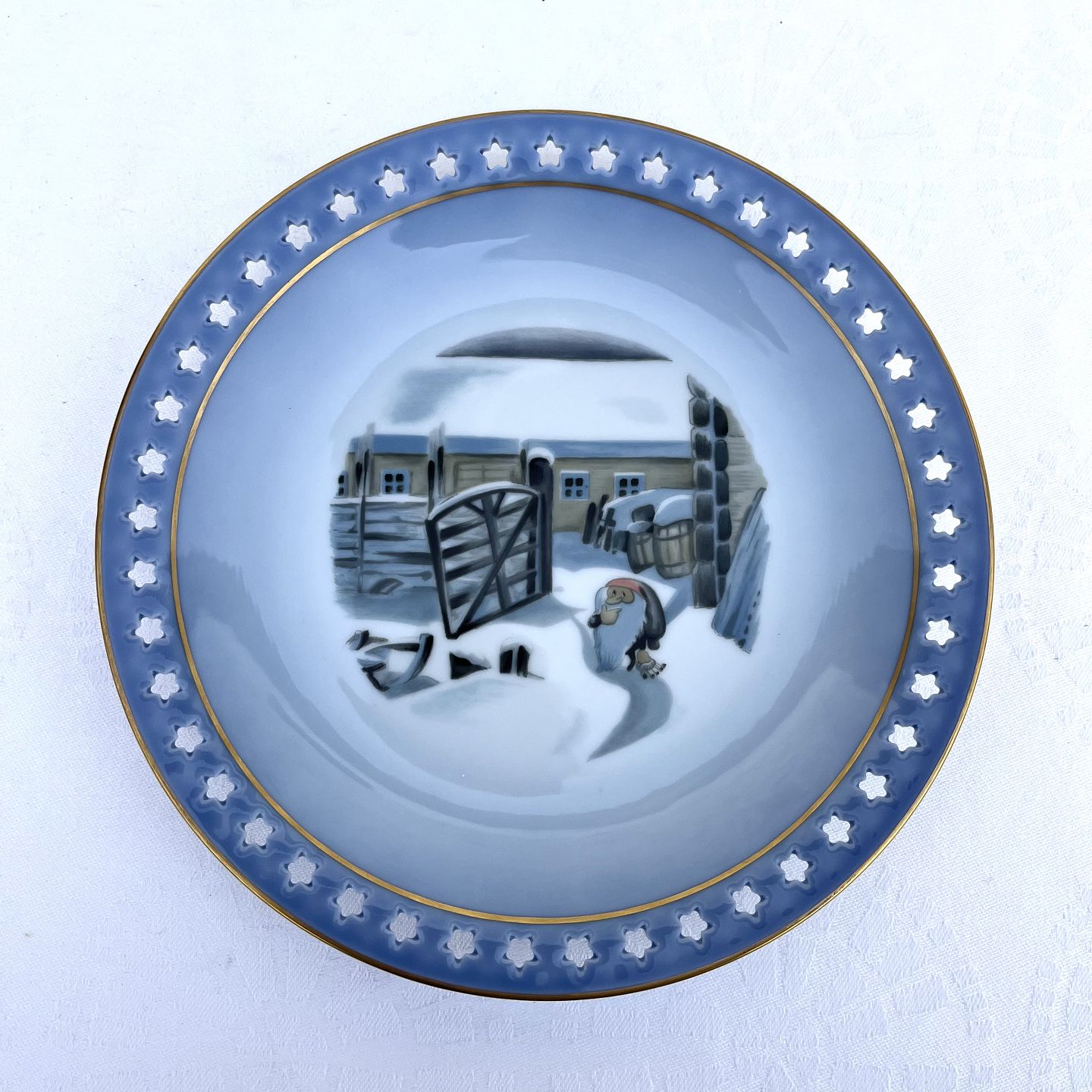 Bing & Grøndahl / Royal Copenhagen, Cake plate, Christmas Pixie at the garden gate #3504 / 616 #1 504617, 17.5cm in diameter, 2nd sorting, Design Harald Wiberg *Nice condition*