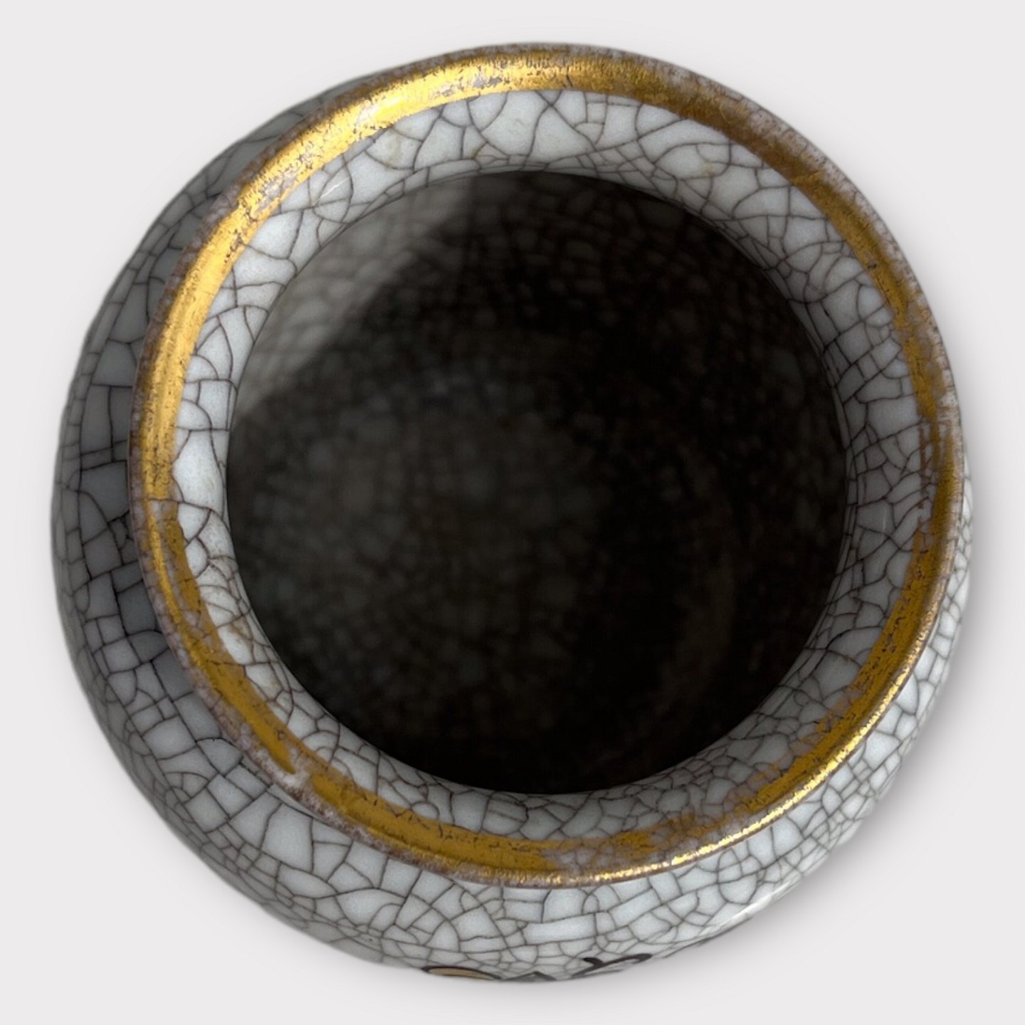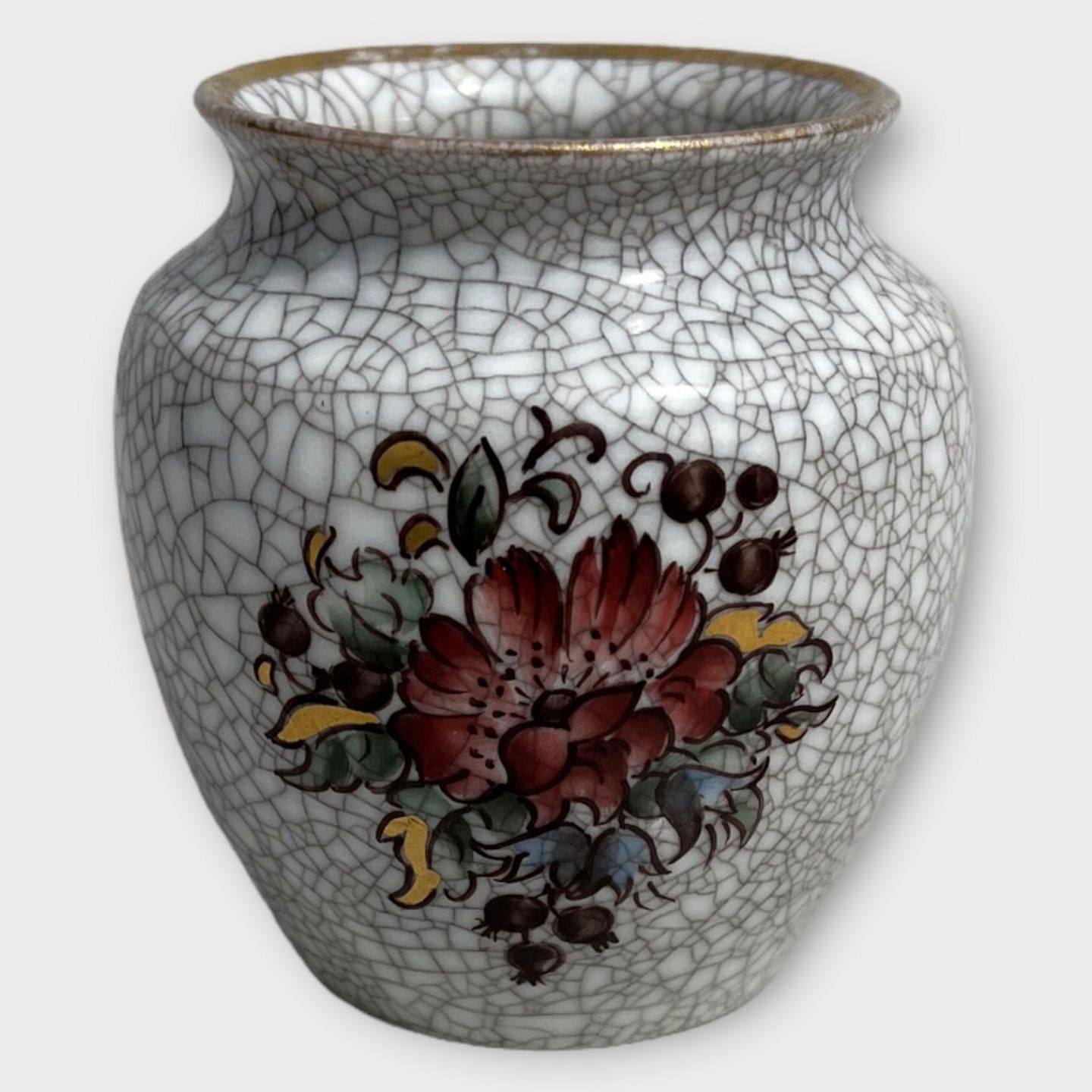 Dahl Jensen, Krakelé, Vase with floral motif, 8cm high, 7.5cm in diameter *With wear on the gold edge*