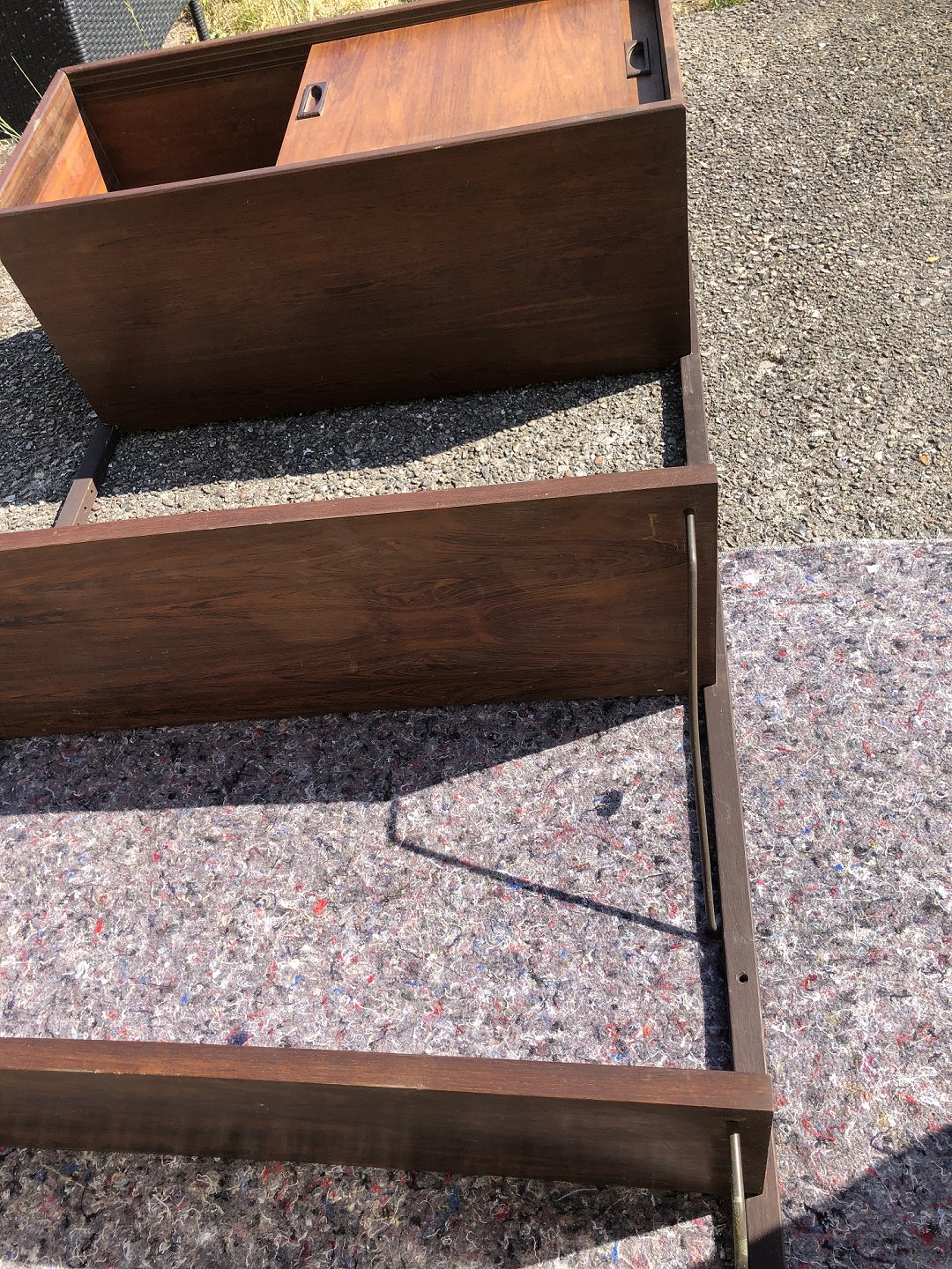 Shelving system in rosewood veneer. Cabinet: 80x35x33cm, Vanger 210cm, Shelf 80x25cm, shelf 80x30cm. Danish modern from the 1960s. Has traces of use.