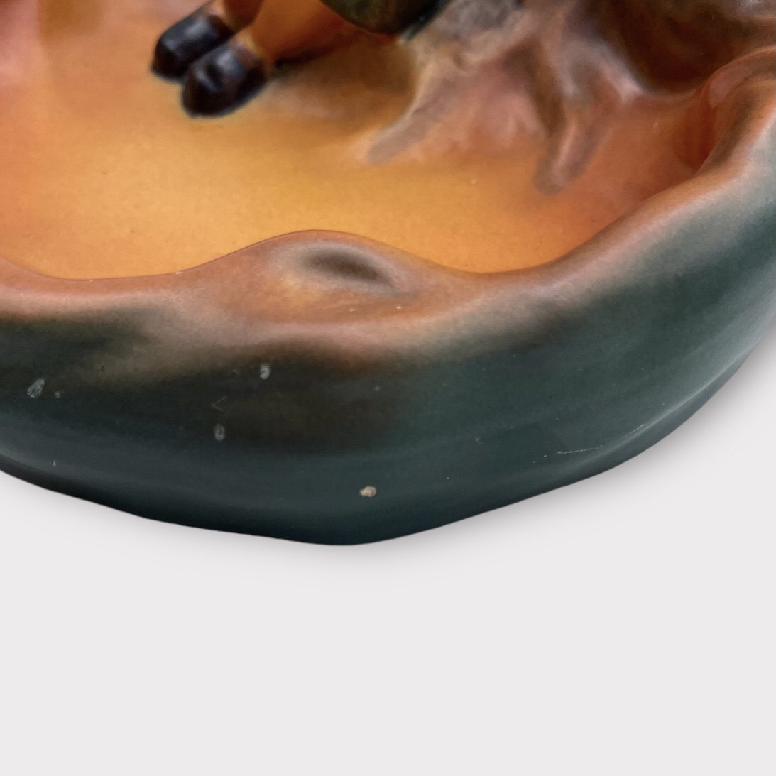 P. Ipsen's widow, Terracotta, The little girl with the brimstone, 12cm high, 18cm wide, No. 268, Design Viggo N. Myhregaard *Nice condition but with small traces of use*