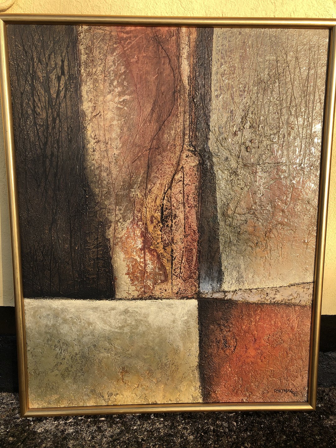 Modern abstract painting on plate, indistinctly signed: "Fortina 95" ?