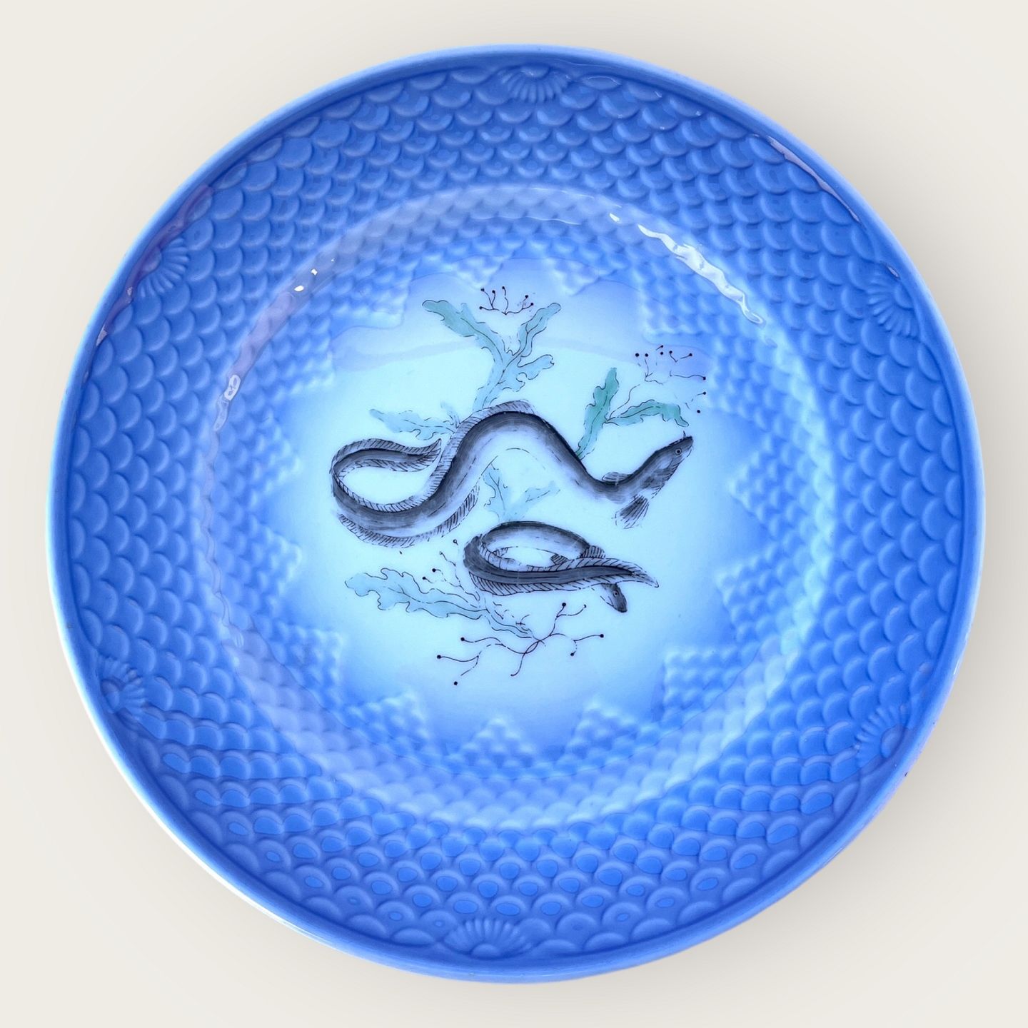 Bing & Grøndahl, Hotel porcelain, Blue tone, Fishing motif, Eel no. 8, 24cm in diameter, *Very worn*