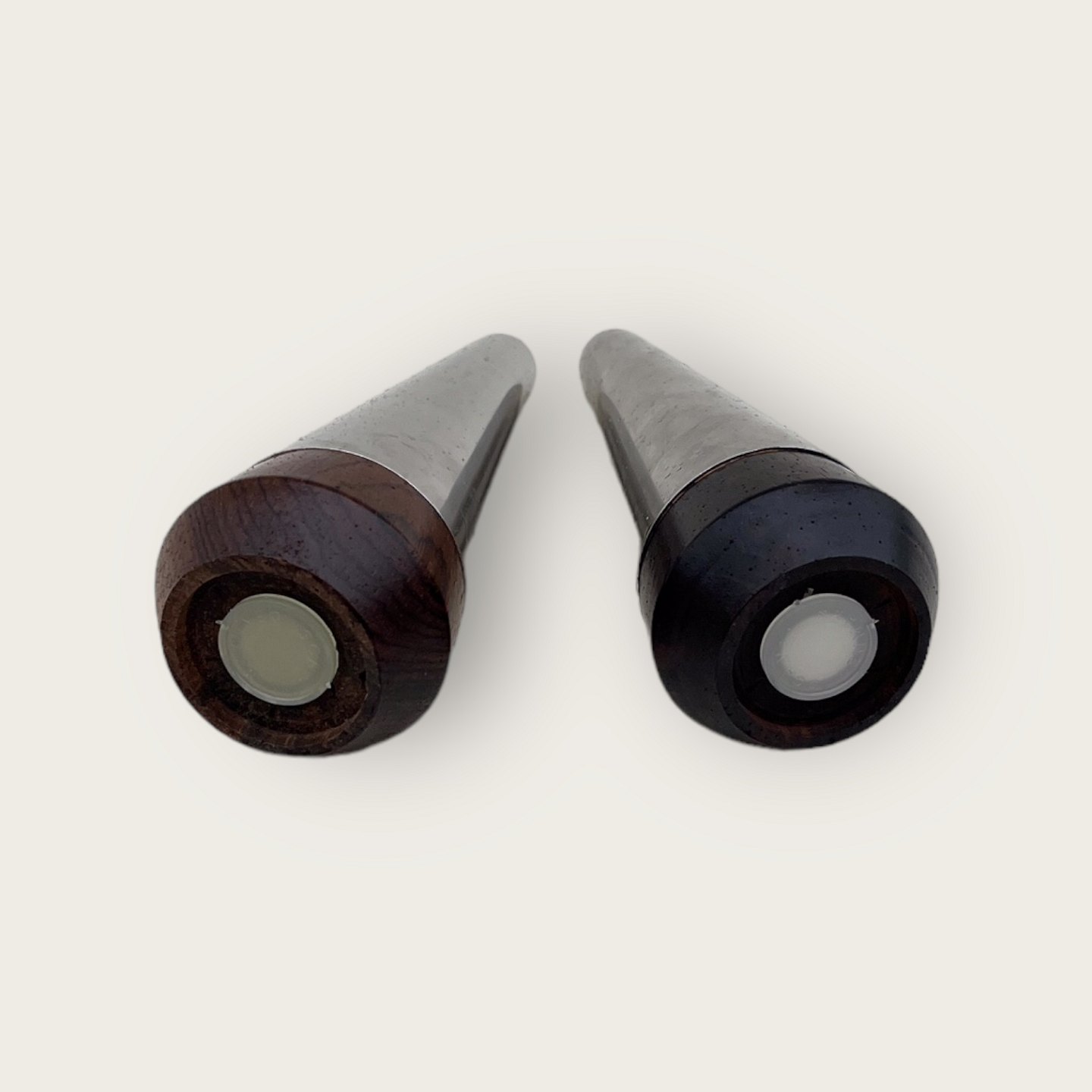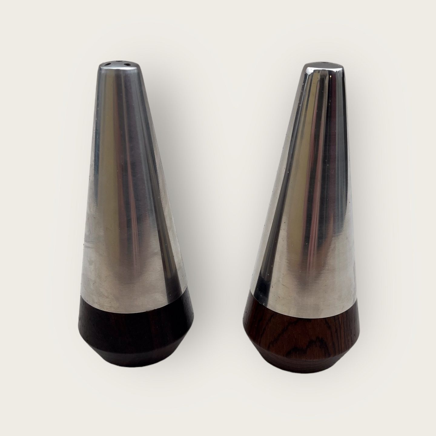 Salt & Pepper Set, Rosewood and steel, 11 cm high, 5 cm in diameter, Danish retro design from the 1960s *Nice condition*