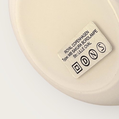 Holmegaard, Sakura table lamp, Model "Small oval", Opal white glass with gray / pink, decoration, 32cm high (incl. socket), 12cm in diameter, Design Sidse Werner *Perfect condition*