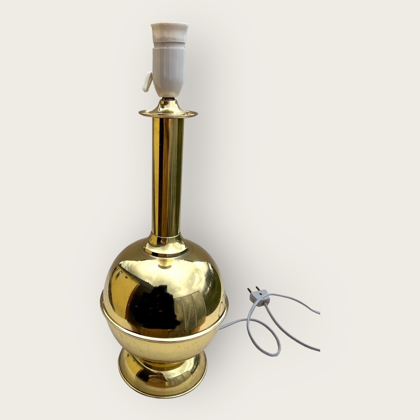 Brass table lamp, With ball, 44cm high, 18cm in diameter *With small patinated spots"