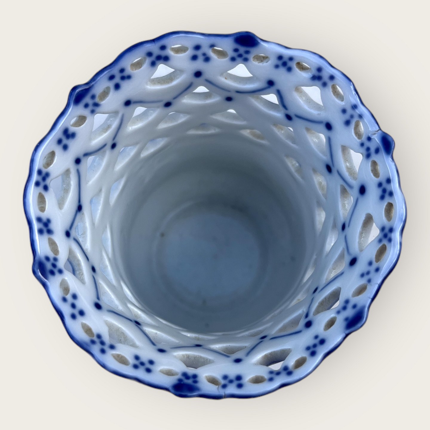 Blue Fluted, Full lace, Vase / Cigar cup #1/ 1016, 11cm high, 8cm in diameter, Employee sorting *With some glaze/ production defects*