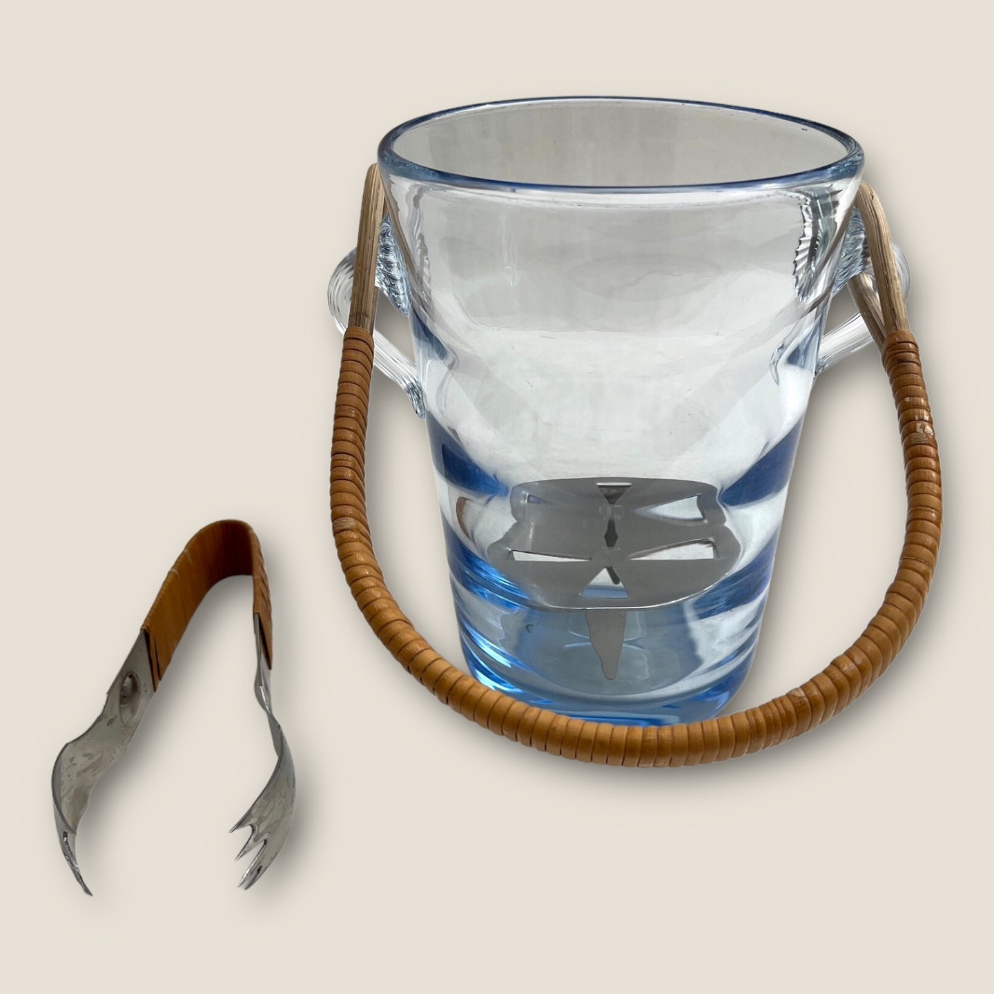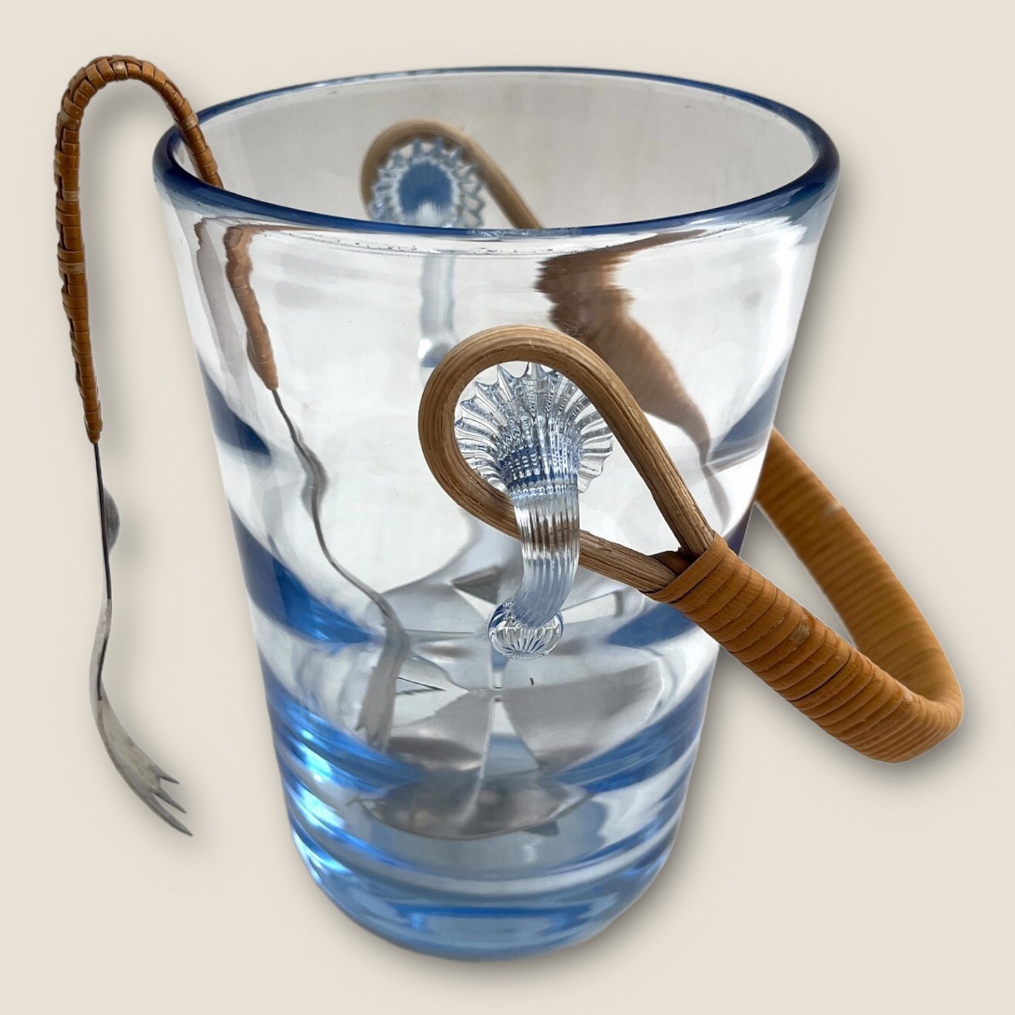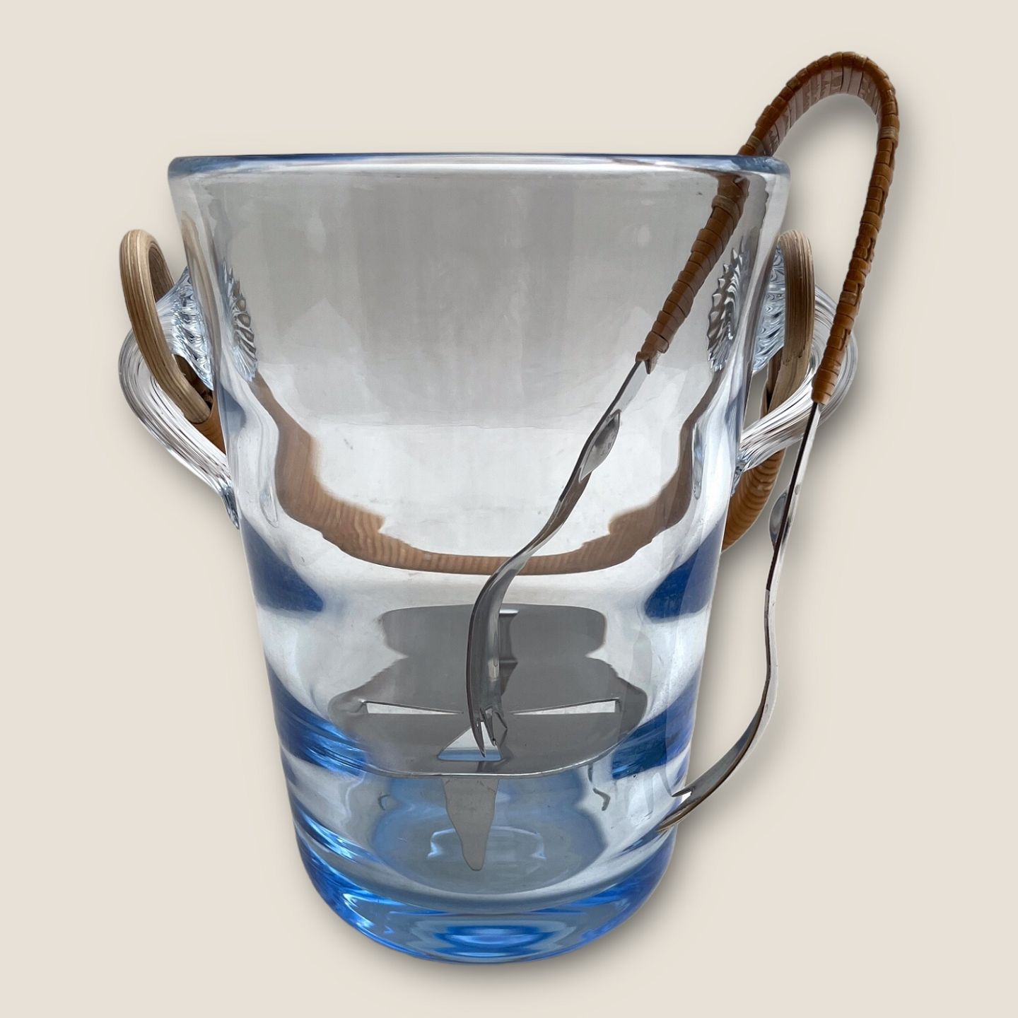 Holmegaard, Ice bucket with bast handle and tong, 16cm high, 11cm in diameter, Design Per Lütken *Perfect condition*