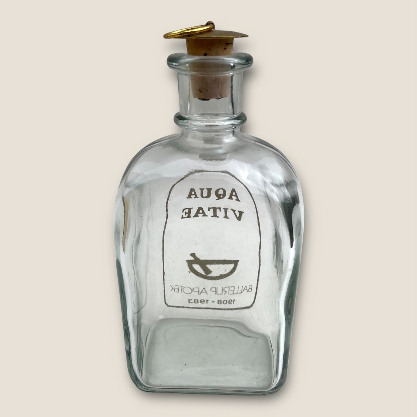 Holmegaard, Aqua Vitae (Water of Life / Akvavit) - Ballerup Apotek 1908 - 1982, 18cm high, 9cm wide, 7cm deep *Nice condition*