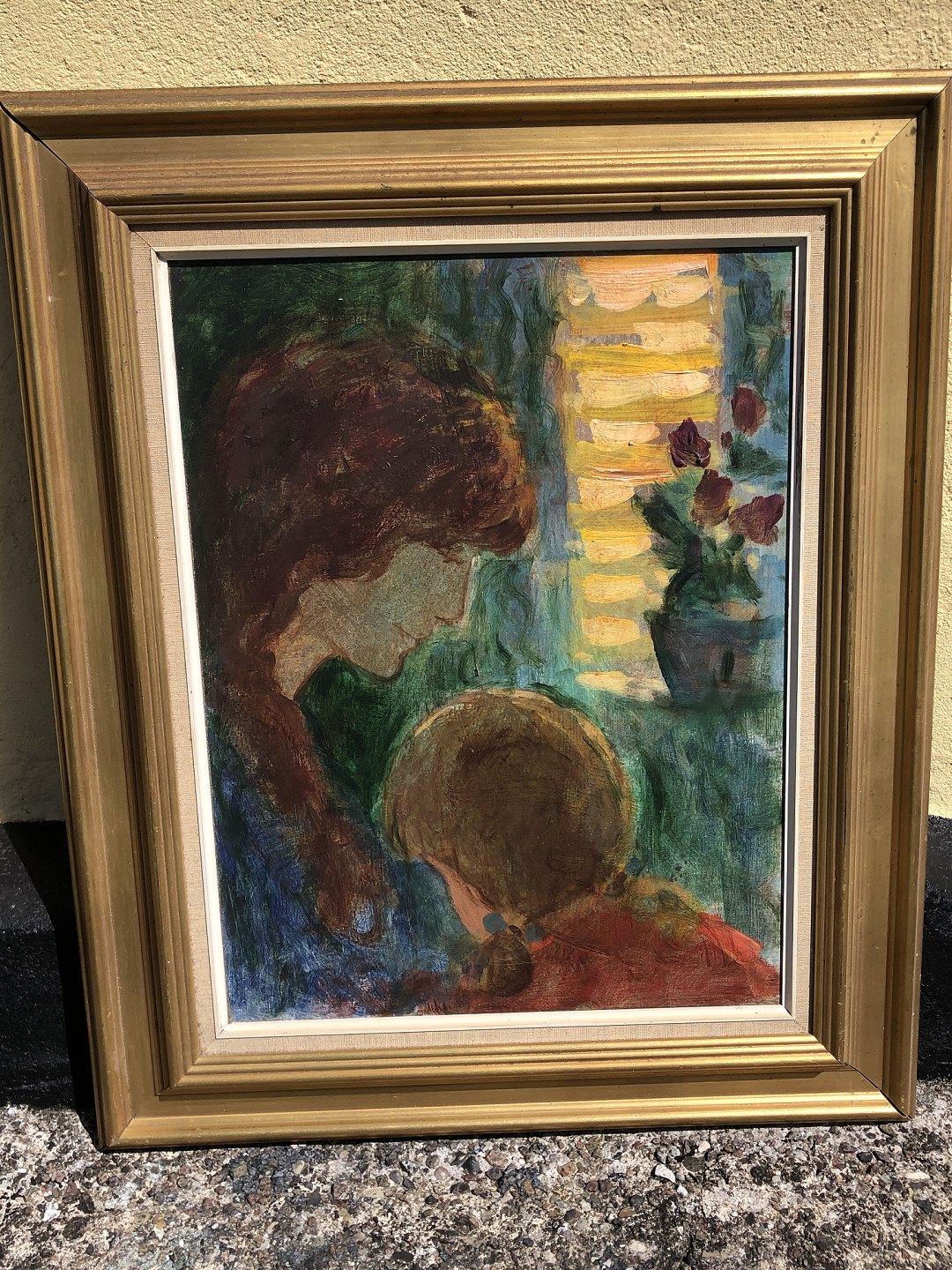 Thomas Tråsdahl Møller, Oil painting on canvas, Mother and child, Dimensions with frame: 96x57 cm