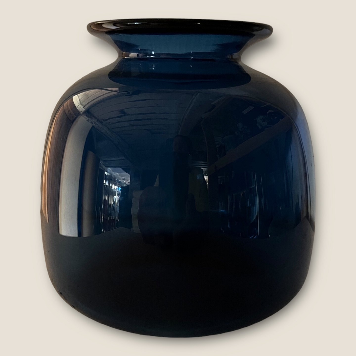 Blue glass vase, 14cm high, 13cm in diameter *Nice condition*