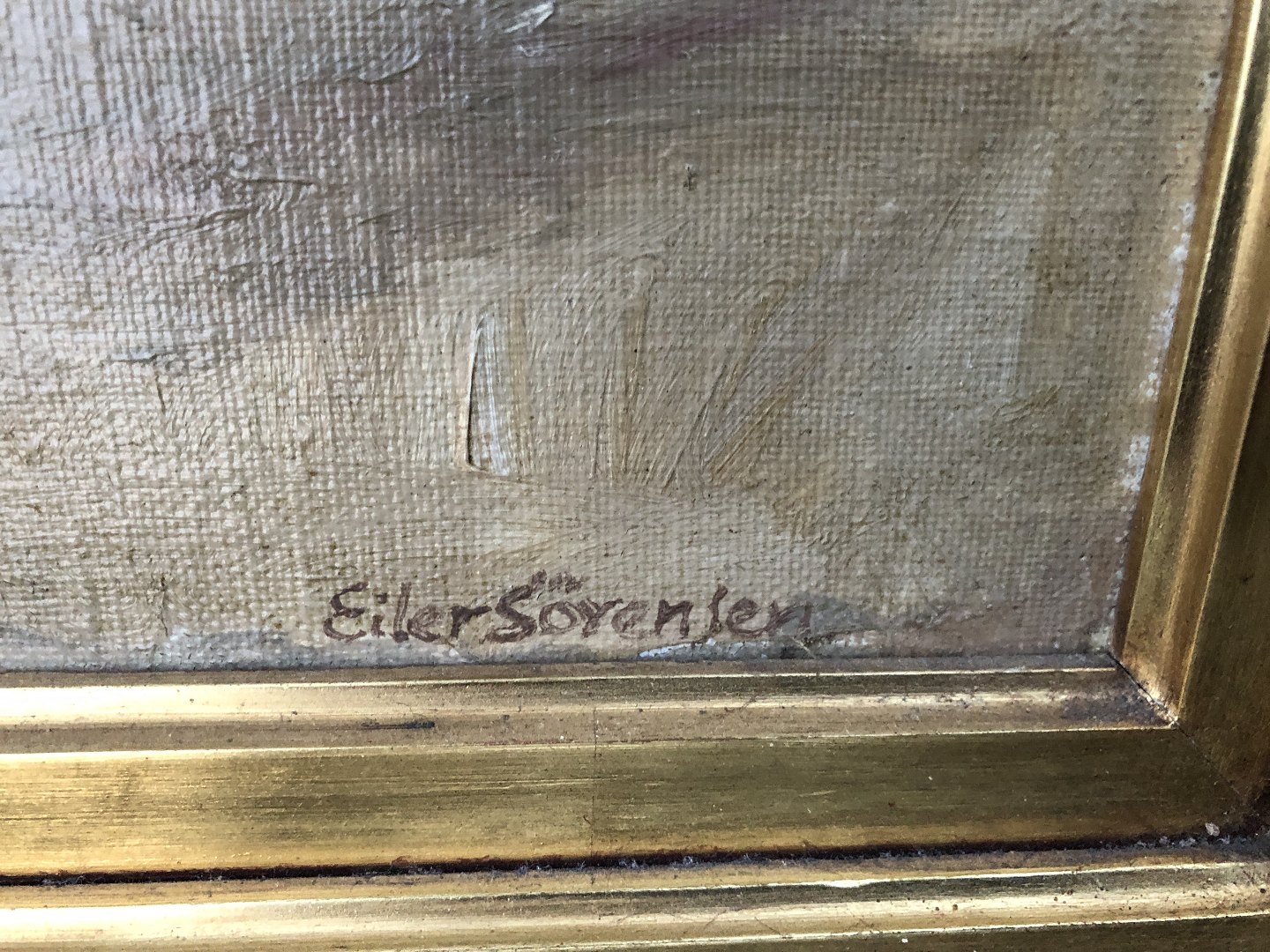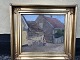 Eiler Sørensen (1869-1953), A girl in front of houses, Oil painting on canvas, Dimensions with frame 48x53 cm