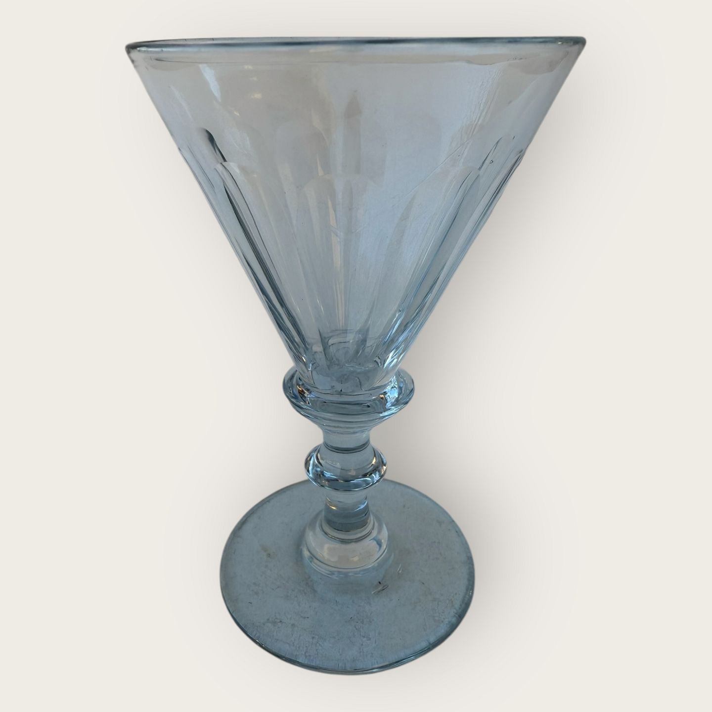 Anglais, faceted glass, ball-cut at the bottom, Height 13.5cm, Diameter at the top 8.5cm, Diameter at the base 7.2cm, A few air bubbles.