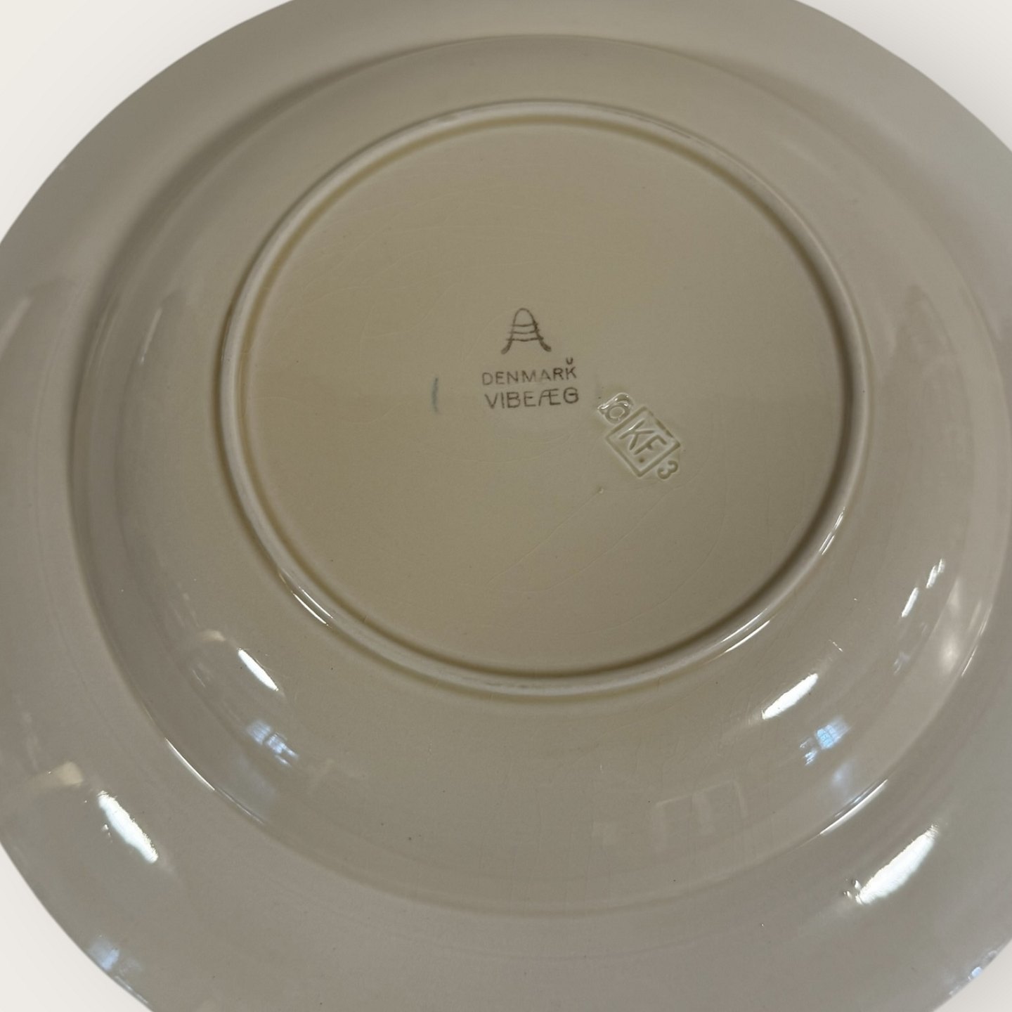 Royal Copenhagen, Aluminia, Victoria II frame shape, Vibe egg, Fritillaria meleagris, Small deep plate, 23 cm in diameter, Nice used condition but with cracks under the glaze.