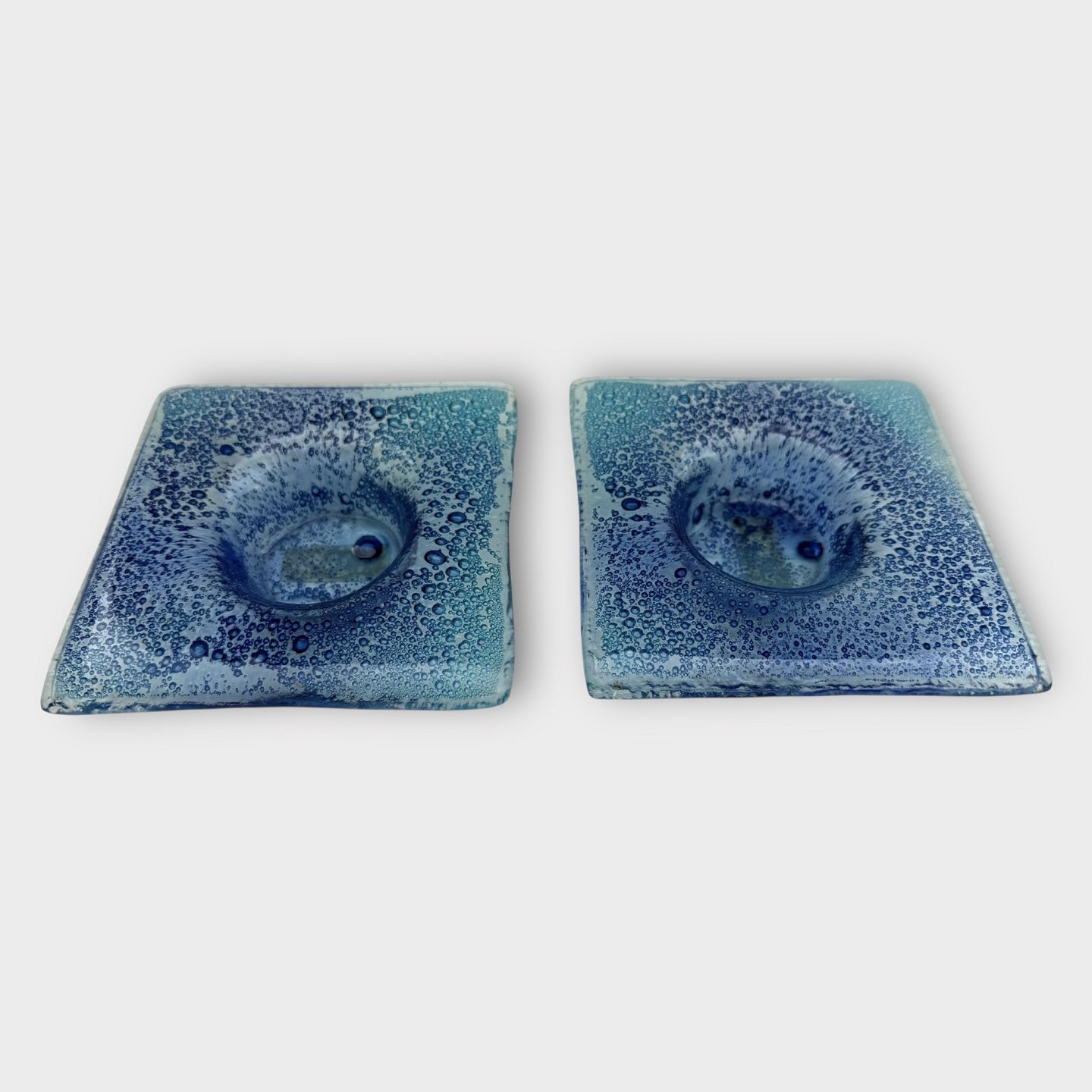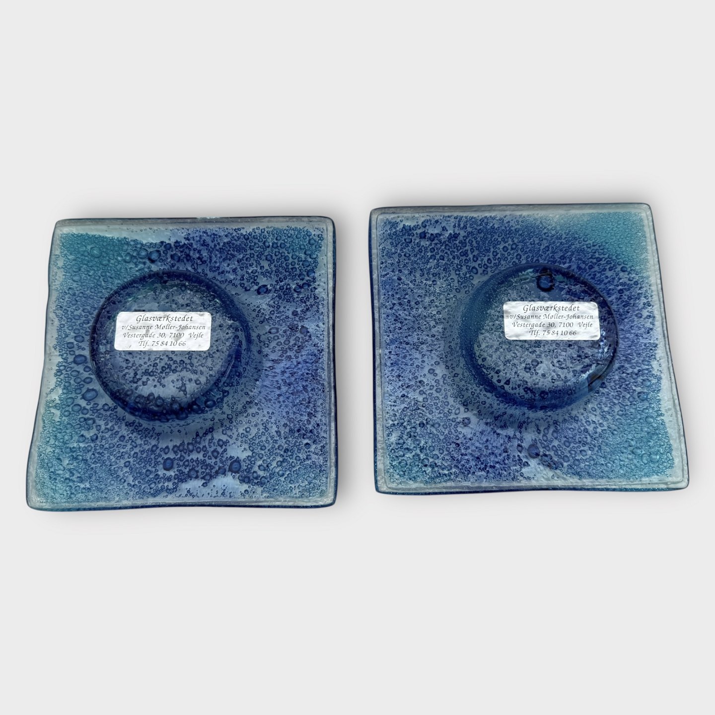 Susanne Møller-Johansen, Glasværkstedet, Vejle, 2 tealight candlesticks, 12.5x12.5cm, good condition