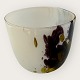 Holmegaard, Cascade, flower pot covers, opal white glass and yellow, brown and purple, Diameter 16cm, height 13.5cm, Design Per Lütken, 2nd grade *slight unevenness at the edge otherwise good condition*