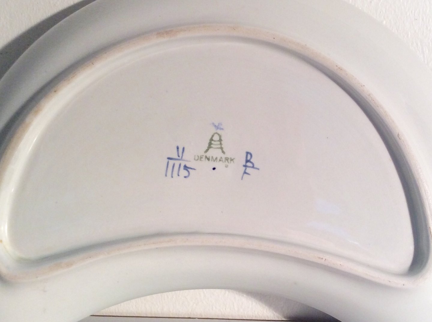 Royal Copenhagen, Aluminia, Trankebar, Mondschale # 11/1115, 22,5 cm breit, 1. Sortierung, Design Christian Joachim *Mit Rissen und leichten Verfärbungen unter der Glasur*