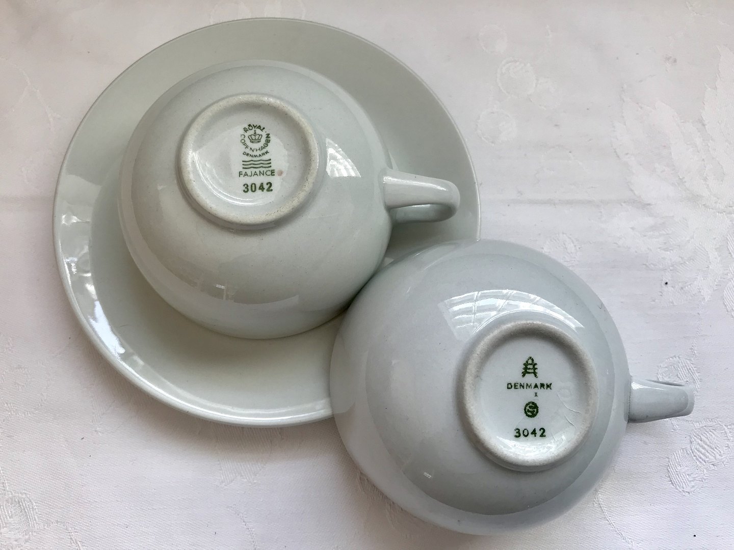 Royal Copenhagen, Aluminia, blauer Rand, Kaffeeset # 3042, 5 cm hoch, 8,5 cm Durchmesser, Design Grethe Meyer * Guter Zustand *