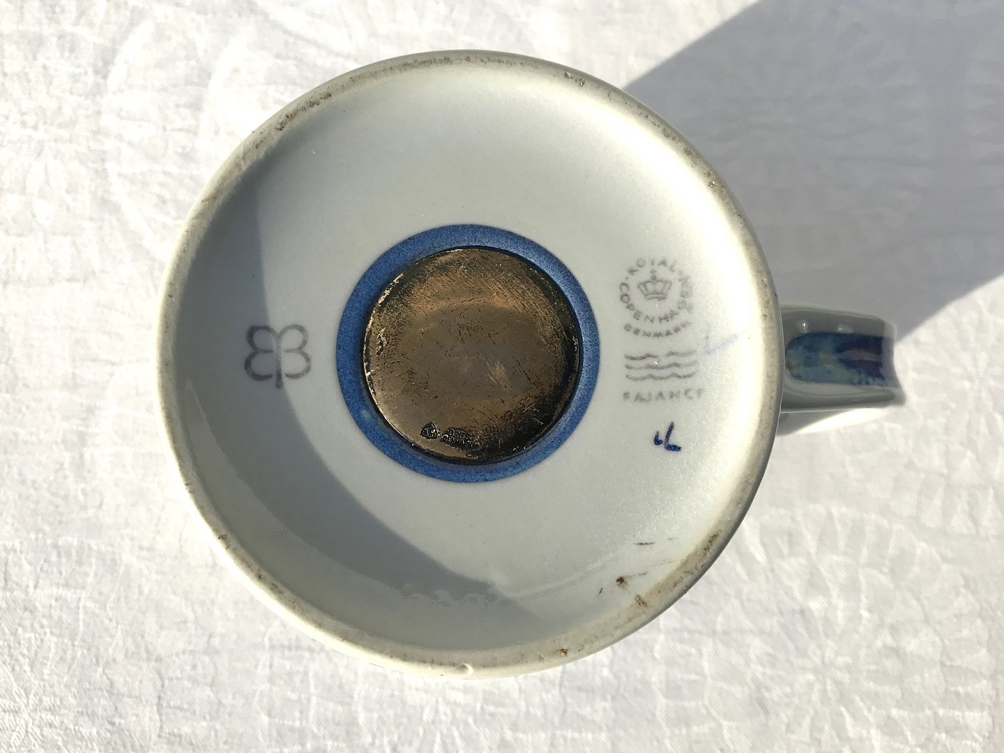 Royal Copenhagen, Aluminium, Großer Becher, 1972, 12 cm hoch, Design Bodil Buch, Mit silberner Fassung * Guter Zustand *