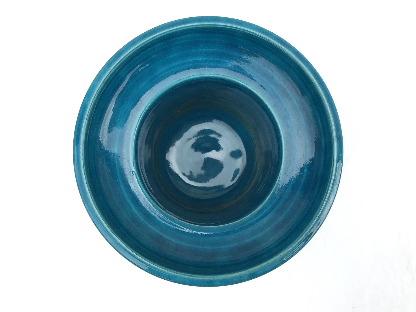 Kähler Keramik, blau glasierter Blumentopfdeckel mit Siegel, 16 cm Durchmesser, 11 cm hoch, Design Nils Kähler * Perfekter Zustand *