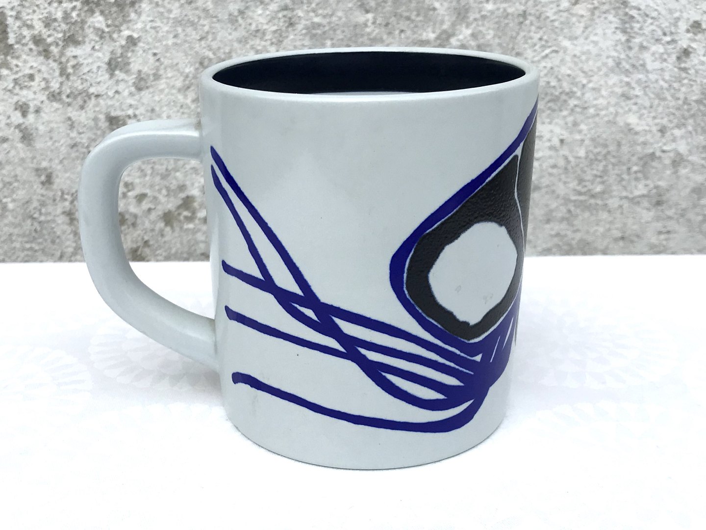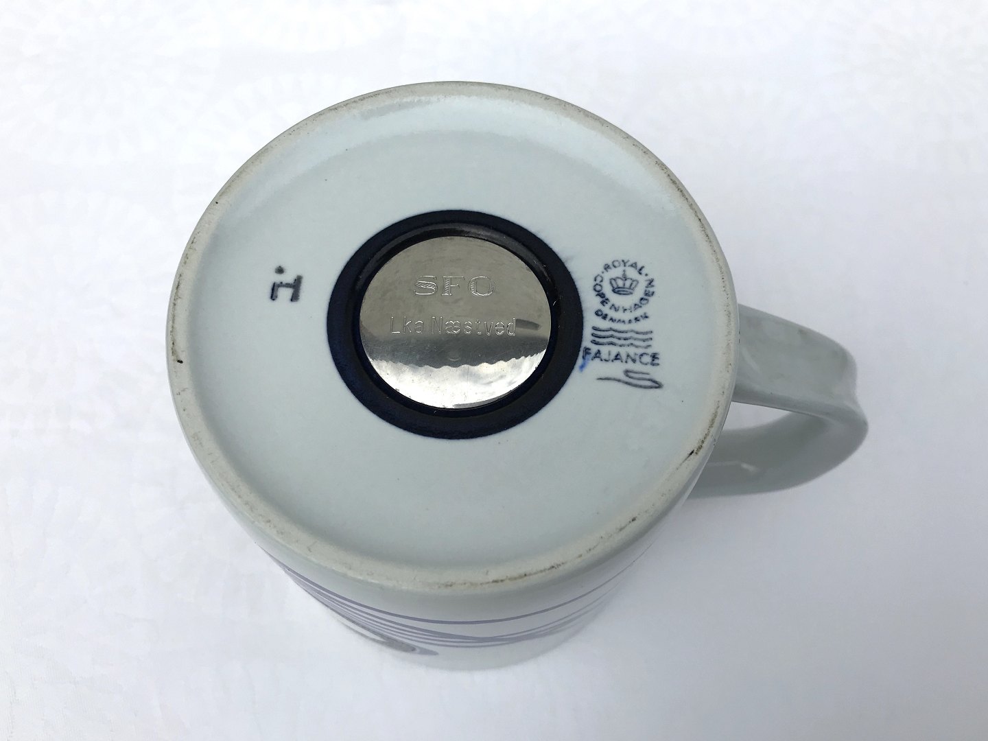 Royal Copenhagen, Aluminia, Große Jahresbecher 1986, 12 cm hoch, Design Inge Lise Kofoed, mit Silberfassung * Guter Zustand *