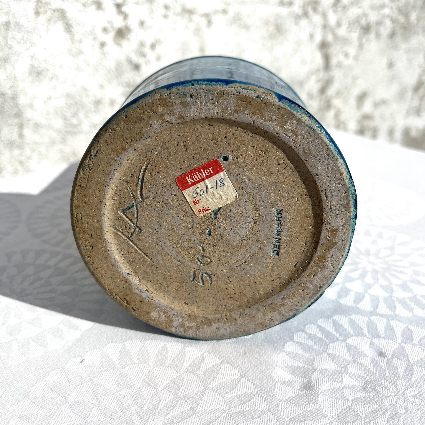 Kähler Keramik, Vase mit blauer Glasur, 18 cm hoch, 10,5 cm Durchmesser, Nr. 501 - 18, Signiert hak, Design Nils Kähler * Perfekter Zustand *